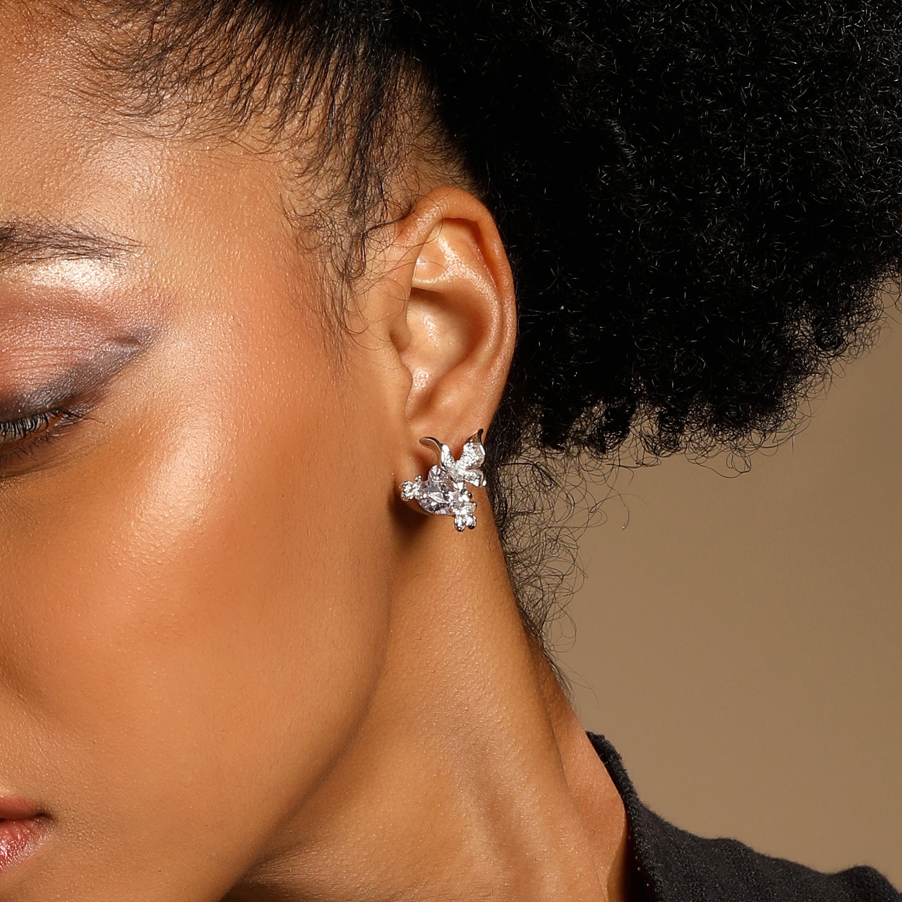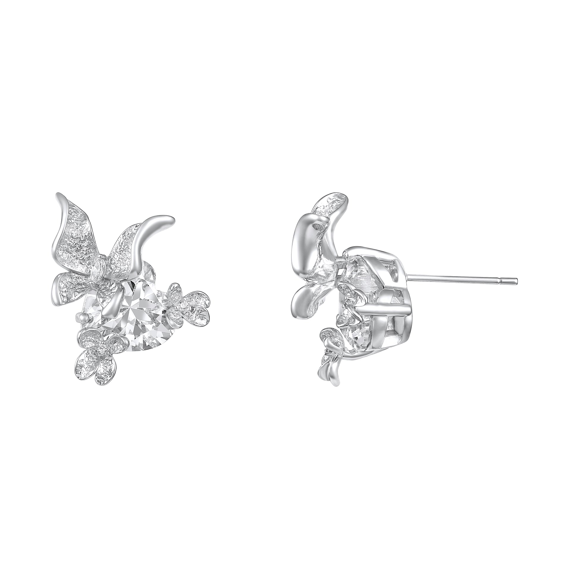 Butterfly Floral Silver Plated Zircon Stud Earring