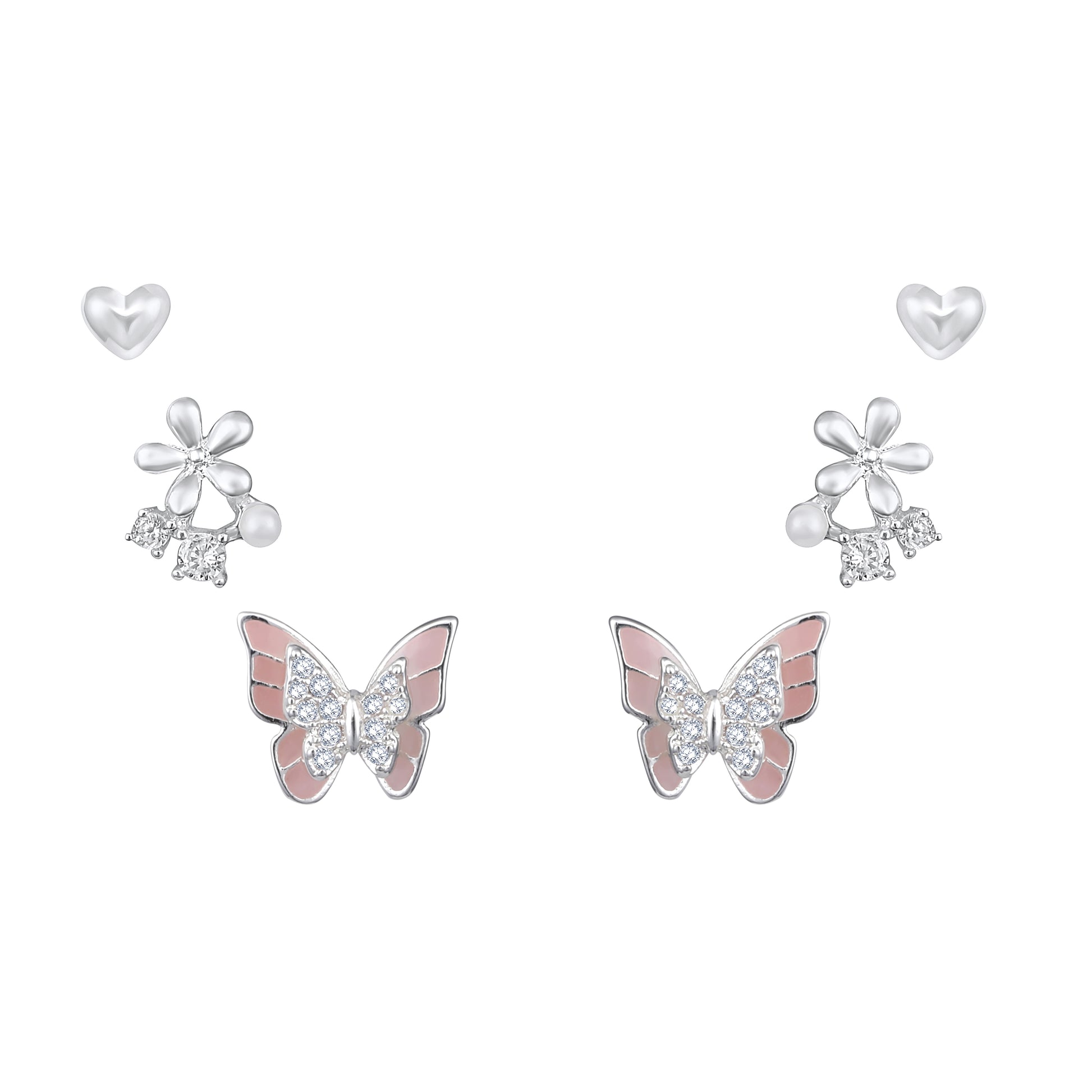 Charm Nest Butterfly Design Silver Plated Zircon Set Of 3 Stud Earring