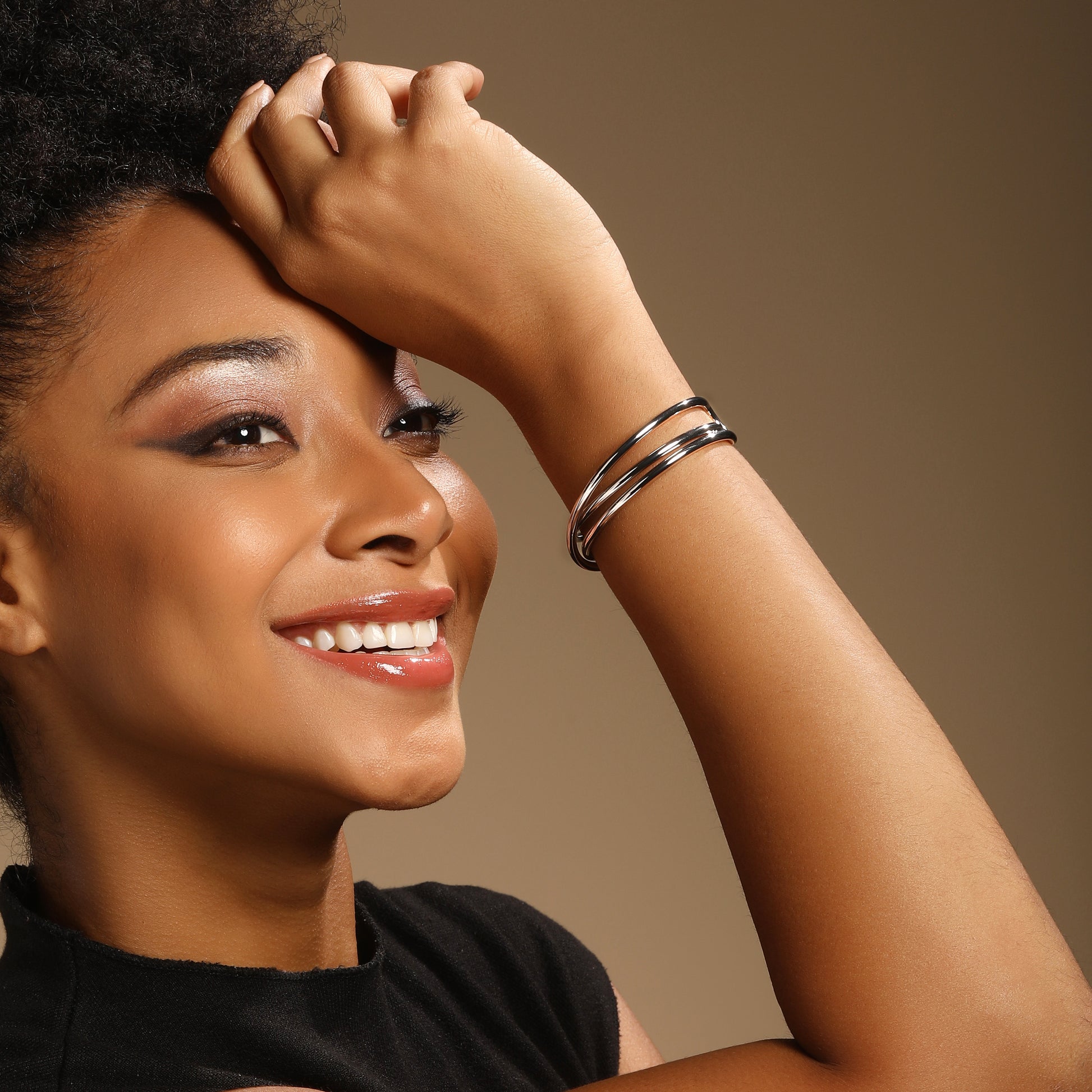 Part of CIERRA’s dynamic collection of silver wristwear for women, this piece adds geometry, gloss, and personality to your daily uniform.