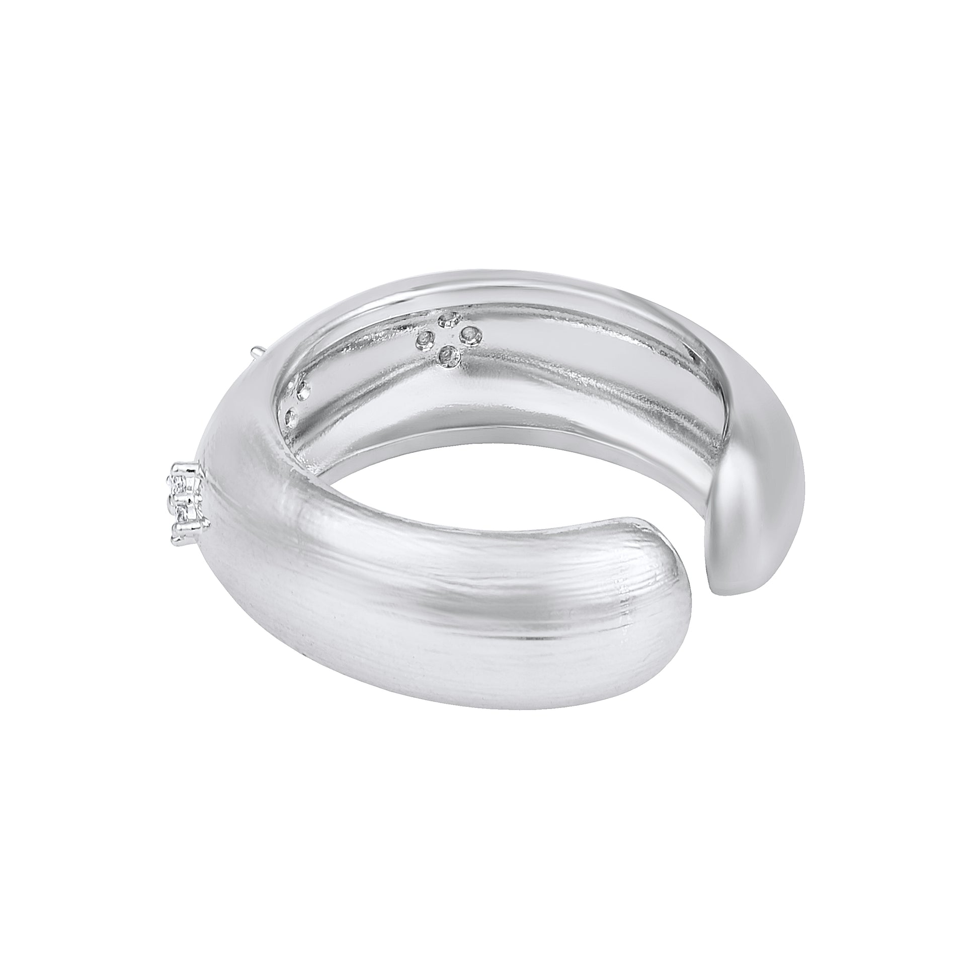 This ring keeps things clean and graceful with a smooth silver-plated finish and a soft, open shape. Silver plating gives you the bright shine of real silver at a more affordable price, making it a smart choice for everyday style without losing that polished look.