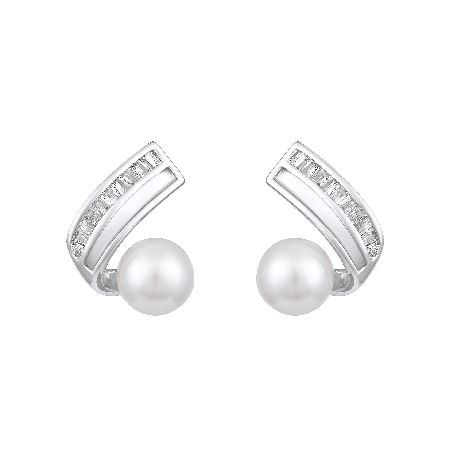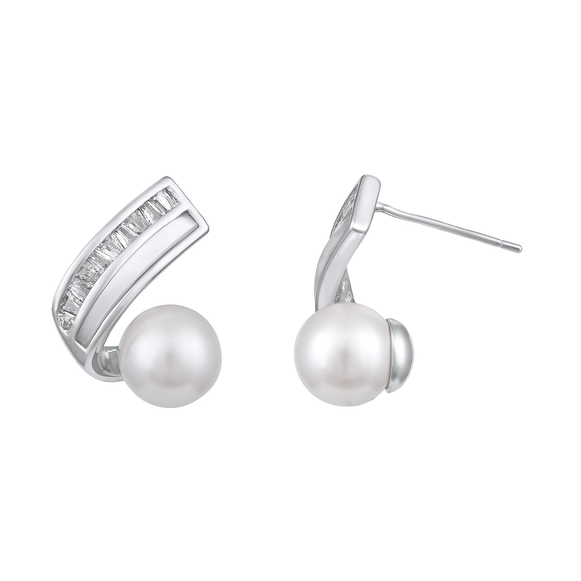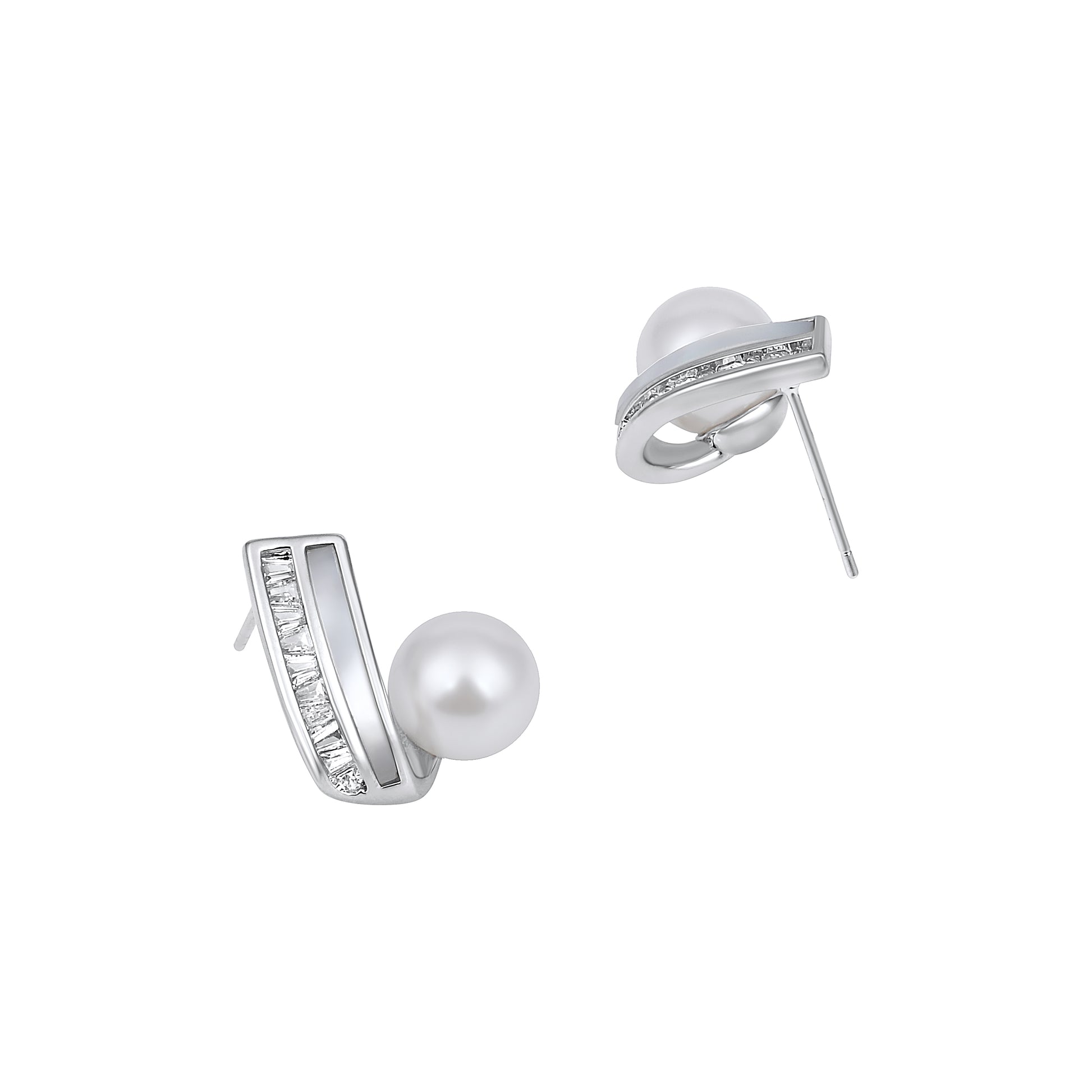 Elegant Crystal Freshwater Pearl Silver Plated Stud Earring