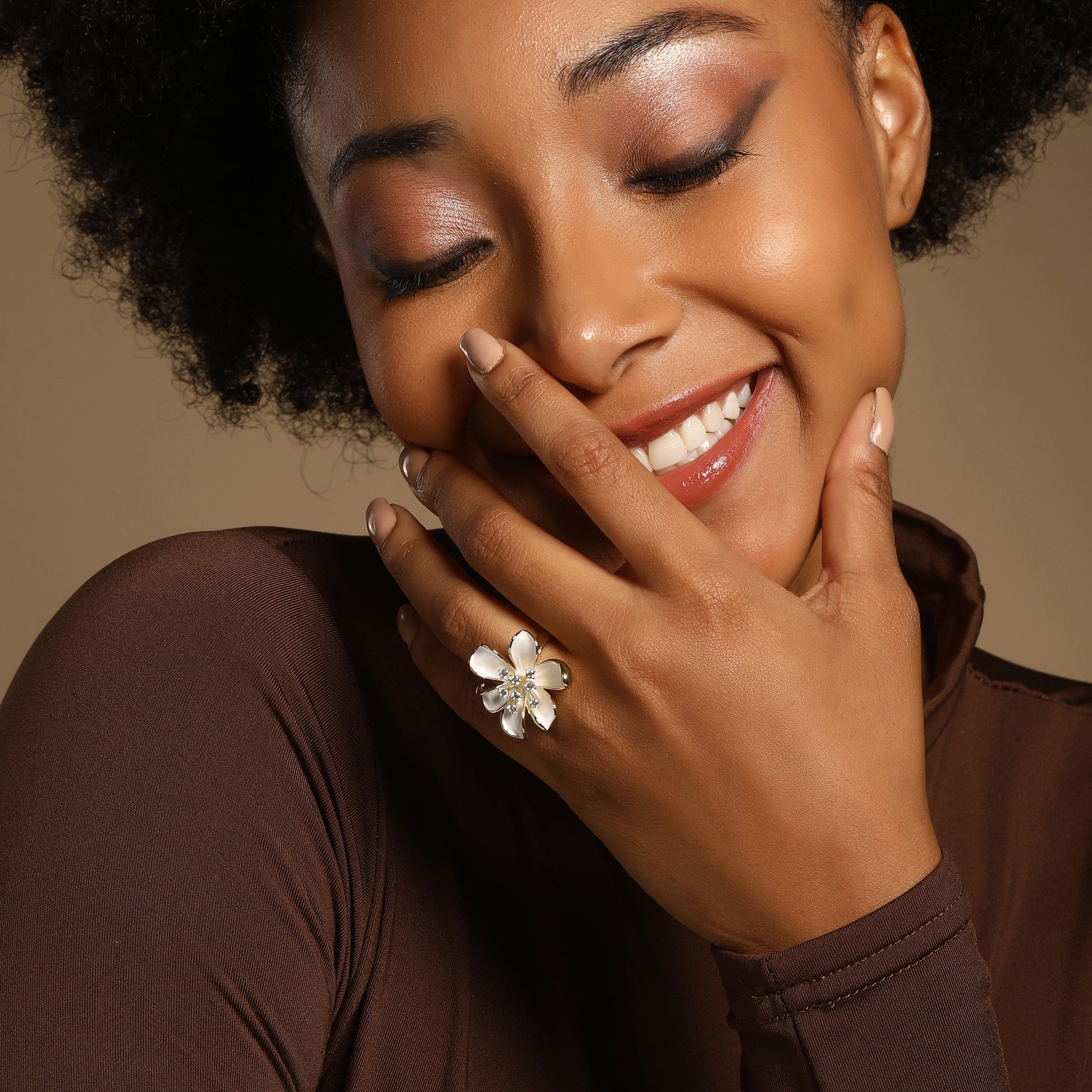 Its adjustable band makes it simple to fit different fingers, while the flower design adds a sweet and fresh feel. CIERRA created this piece for girls and women who love floral jewelry that feels light, pretty, and always in style.
