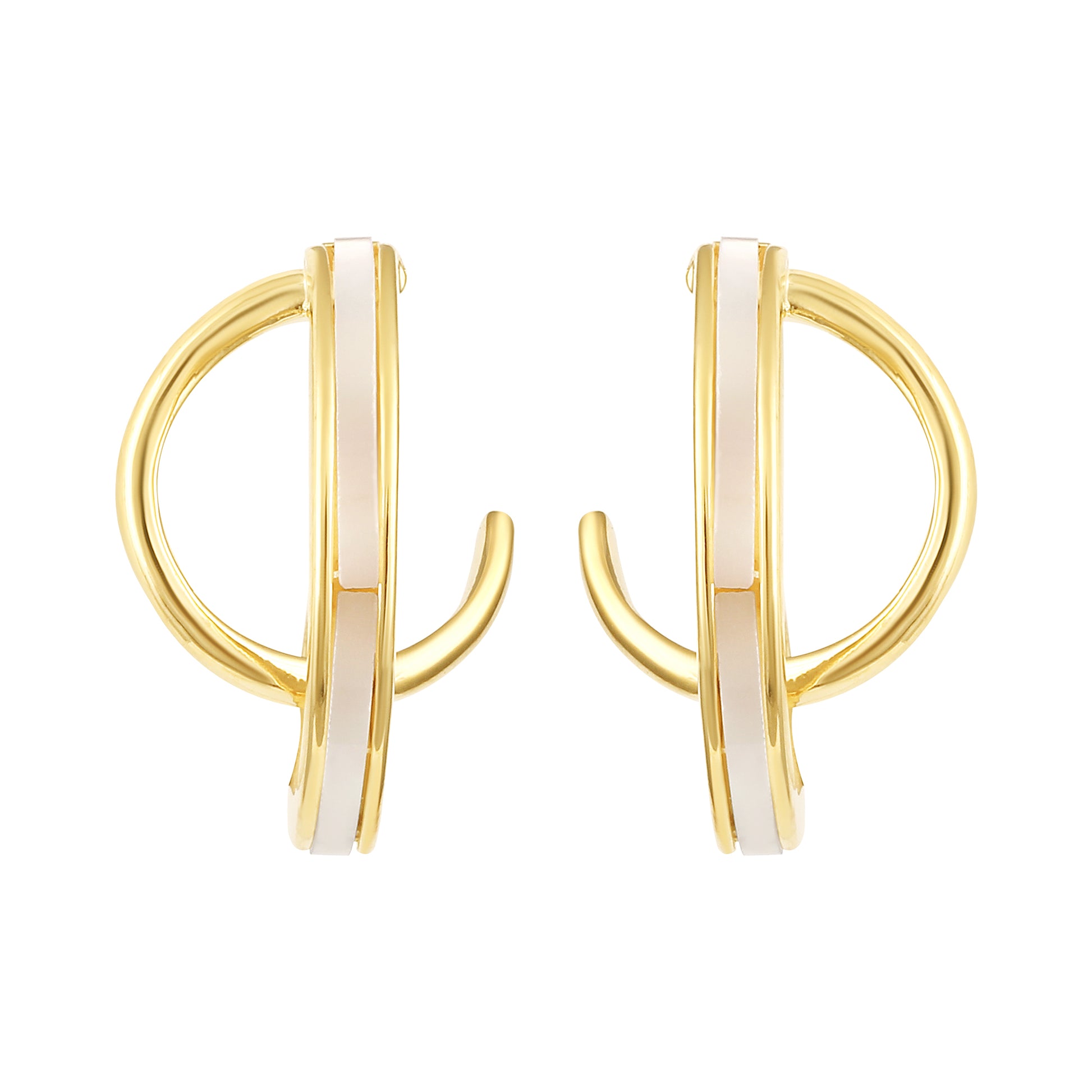 These chic gold hoops are lined with a clean white enamel inlay, giving them a bright, modern edge. The contrast between the glossy gold and matte white adds a fresh, polished finish that works beautifully for both daytime and evening looks.