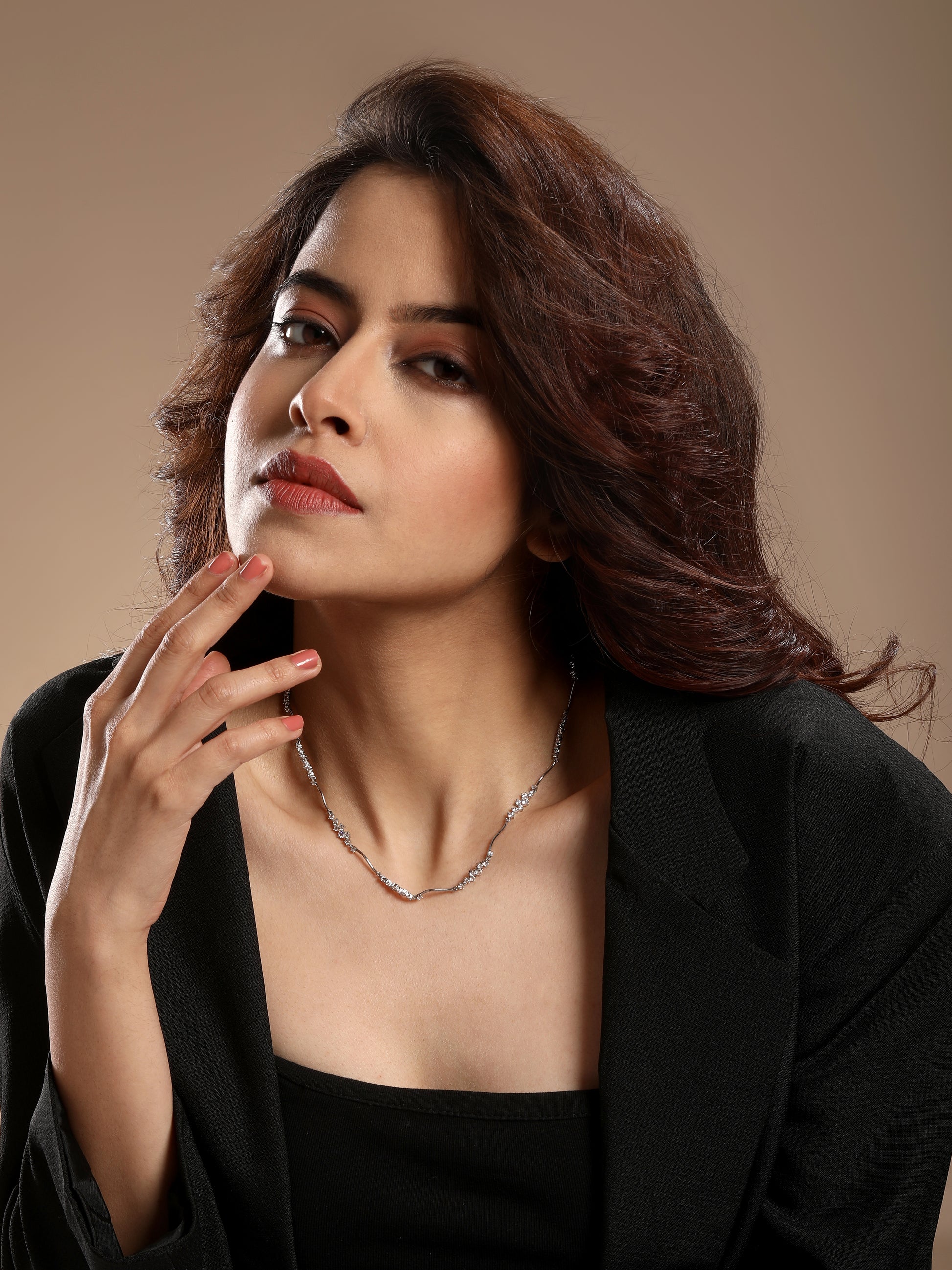 Exotic Studded CZ Silver Plated Zircon Necklace Chain