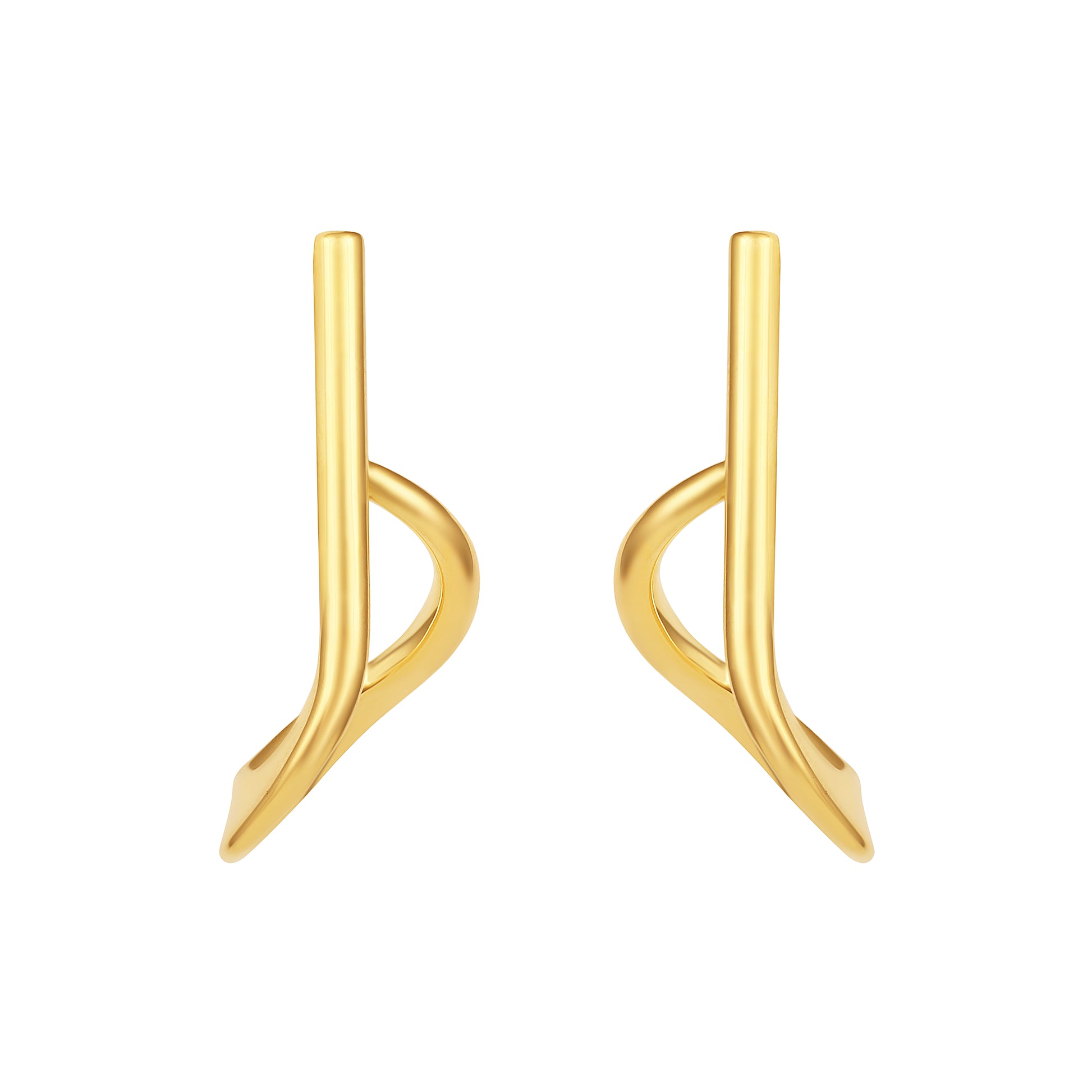 These sleek earrings feature a modern curved silhouette that wraps gently around the lobe, creating a fluid arc of polished gold. Their minimalist yet bold design gives off a contemporary edge—perfect for elevating casual looks or adding elegance to night-out ensembles.