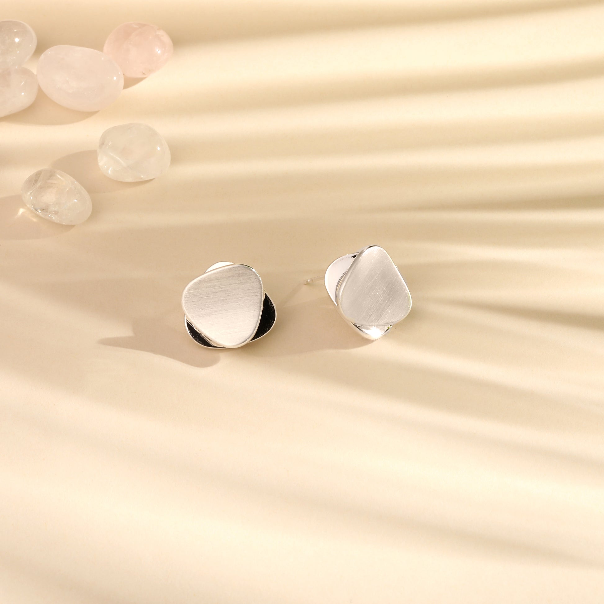Clean lines and contrasting cuts define these silver plated studs—featuring one emerald-shaped crystal and one brilliant round stone nestled side by side. The asymmetrical pairing creates a refined balance of modern geometry and timeless sparkle.