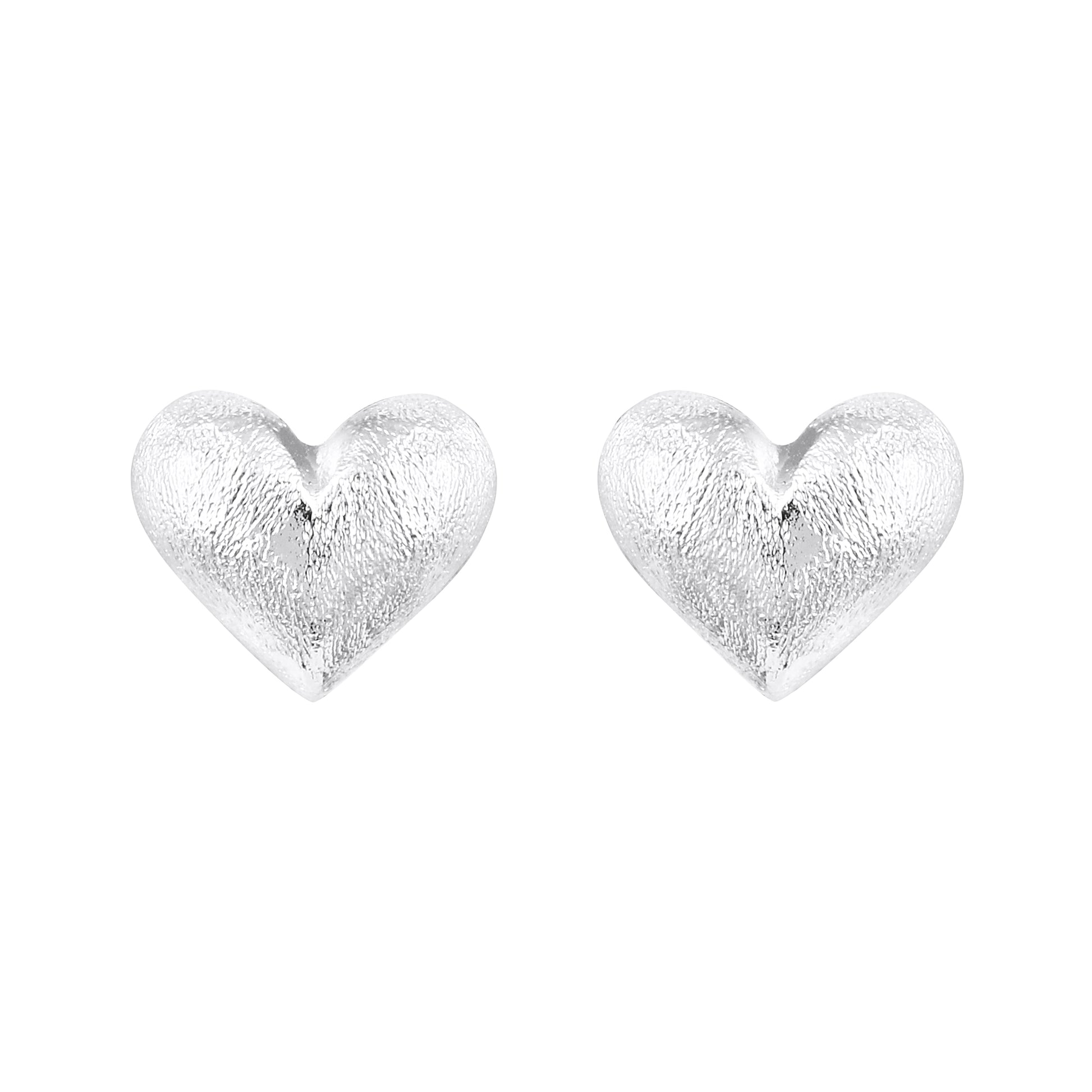 Sweet and sculptural, these heart-shaped silver studs feature a softly hammered texture that shimmers with organic charm. The design plays with light and shadow, offering a radiant yet grounded appeal that feels both sentimental and stylish.