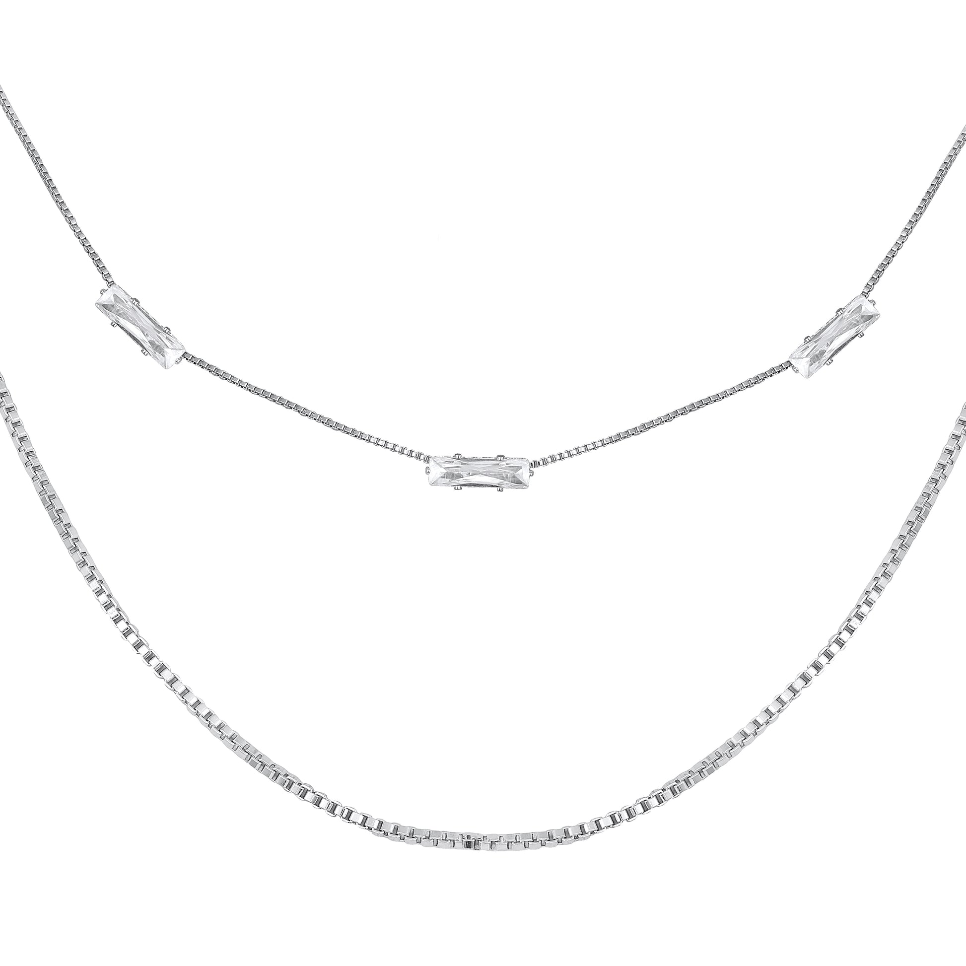 Impressive 2 Layered Silver Plated Zircon Necklace Chain