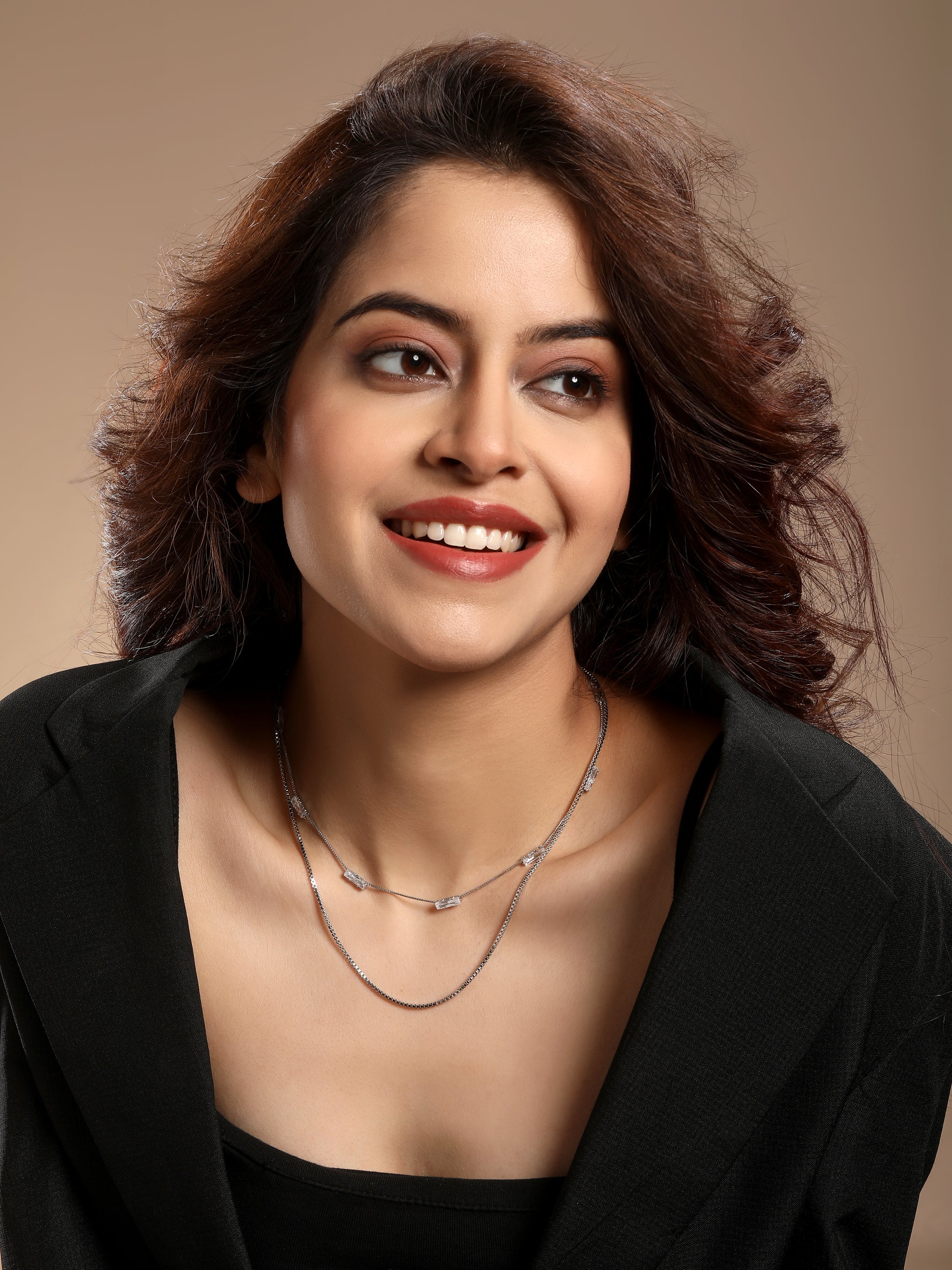 This layered necklace has tiny crystal-like rectangular beads placed along a neat silver-plated chain. The clear bars shine softly, giving the piece a clean and classy look.
