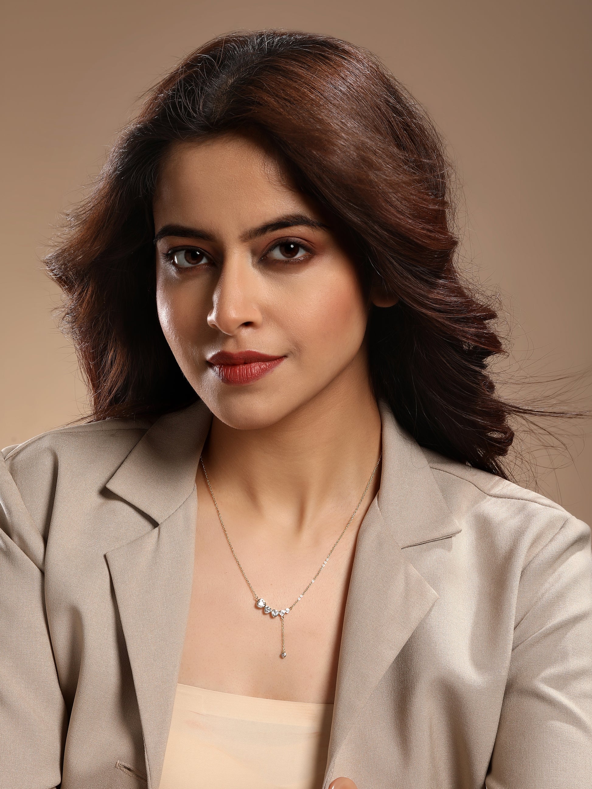 The hearts shine with tiny stones that catch the light, making it a lovely piece for special outings or festive moments. A perfect pick for women and girls who love sweet, romantic styles with a touch of sparkle and elegance.