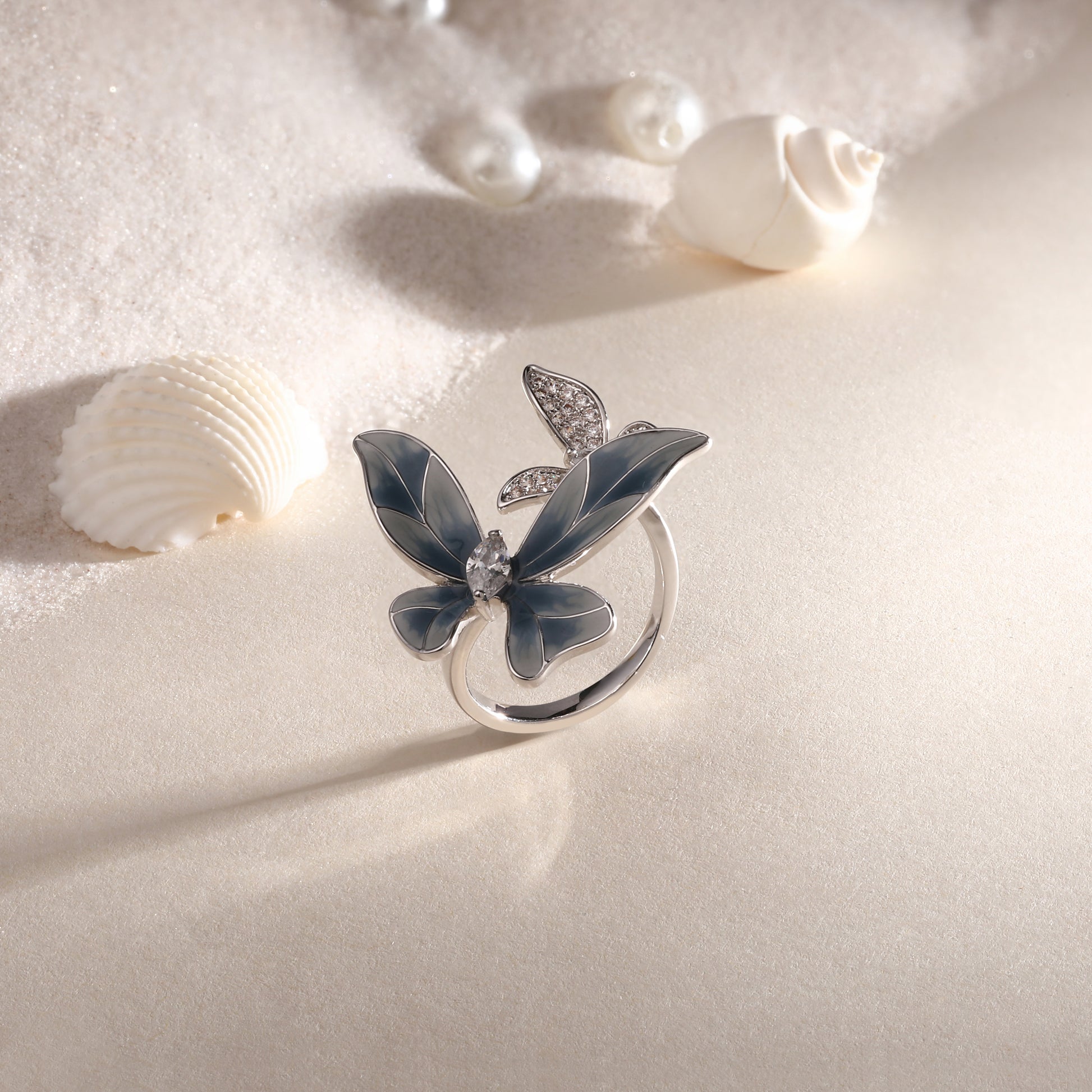 This lotus-shaped ring features soft coloured accents on its petals, giving it a unique, artistic look that stands out from traditional floral designs. The silver-plated finish adds a cool, polished shine, making it a graceful blend of color and calm.