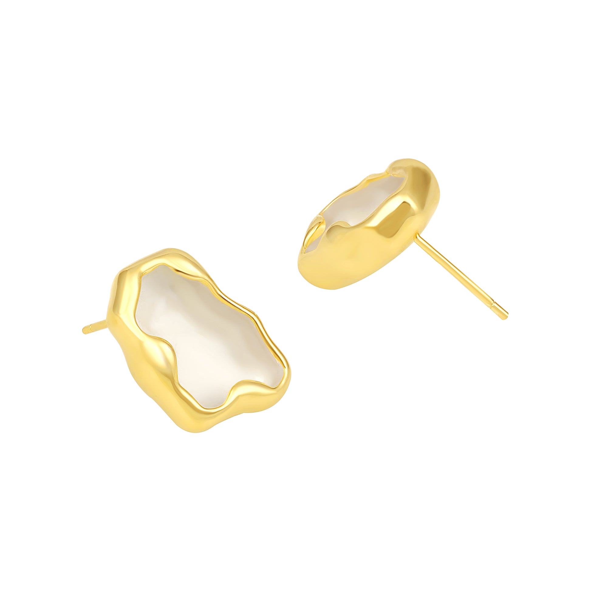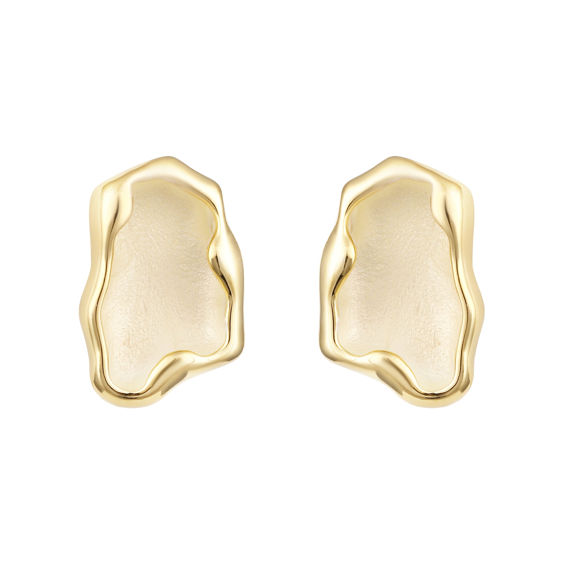 These gold earrings feature a soft, fluid shape with gentle curves and an organic outline—like drops of molten metal frozen mid-fall. The high-polish surface adds a subtle shine, giving the pair a refined yet modern feel.