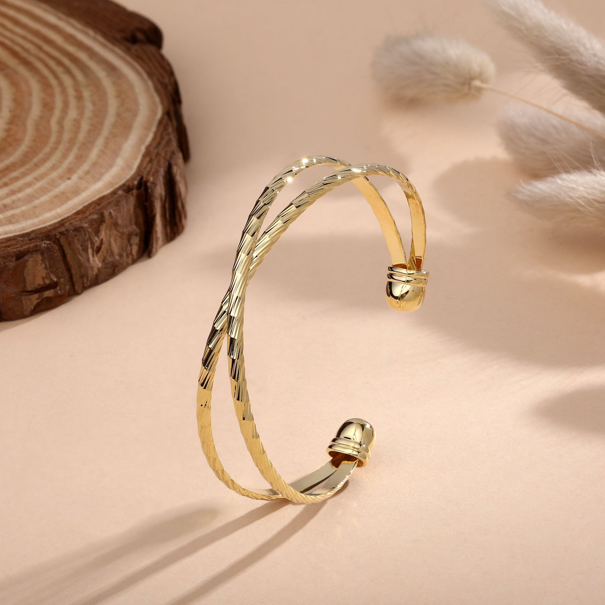 This twist cable gold cuff is equal parts bold and refined. With its sleek, spiral pattern and comfortable open fit, it’s built for women and girls who love jewellery that stands out effortlessly—on casual strolls, work commutes, or stylish cafe meetups.