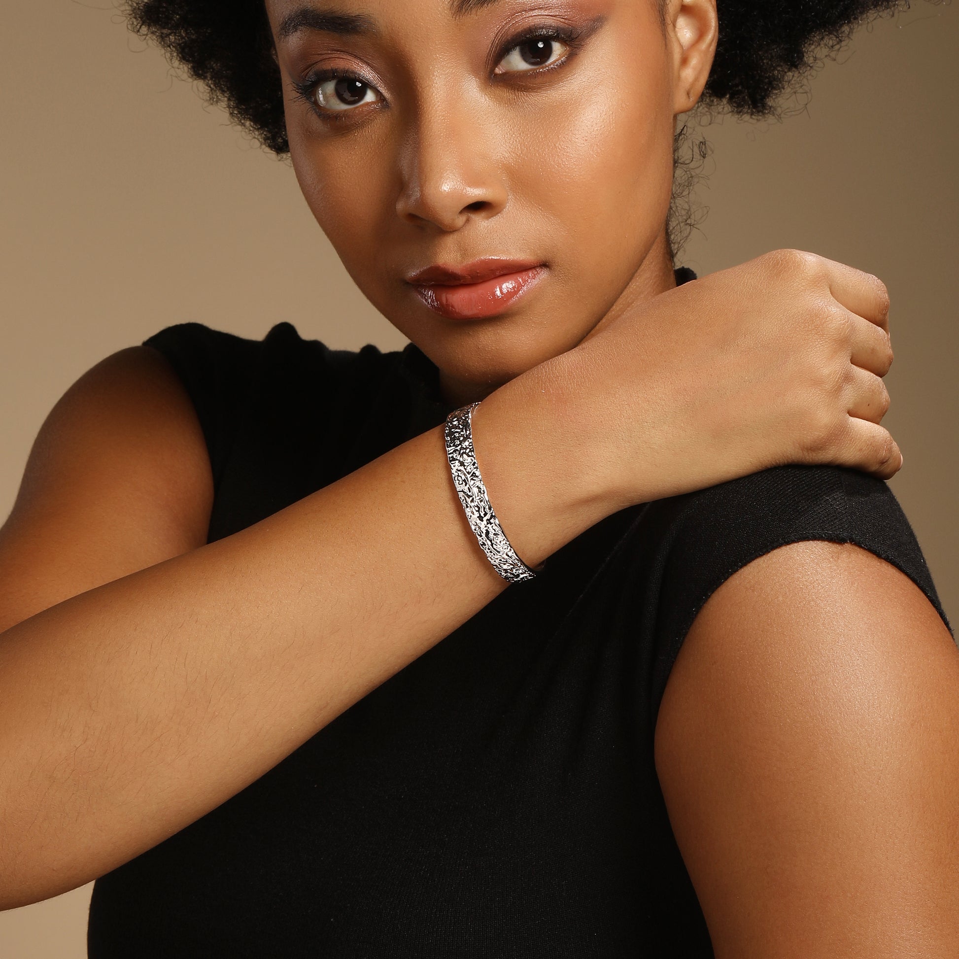 Perfectly imperfect in the best way—this open hammered silver cuff reflects texture, rhythm, and organic movement. Whether you’re catching up at a co-working space or curating your city-inspired wardrobe, it brings handcrafted appeal to clean, modern looks.
