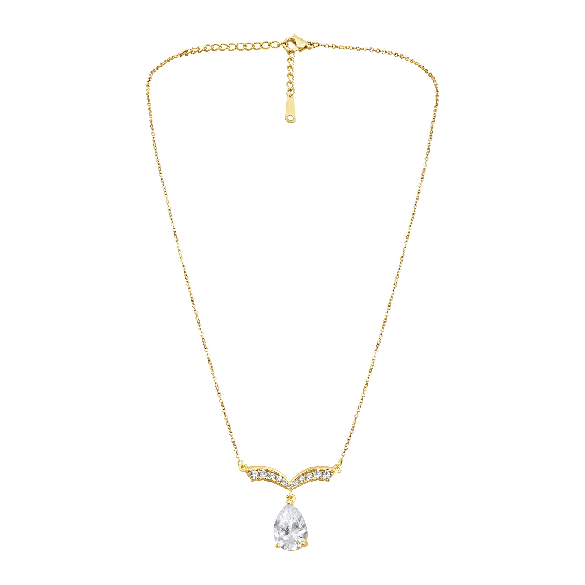 Oval and Wing Design 18KT Gold Plated Zircon Pendant Chain