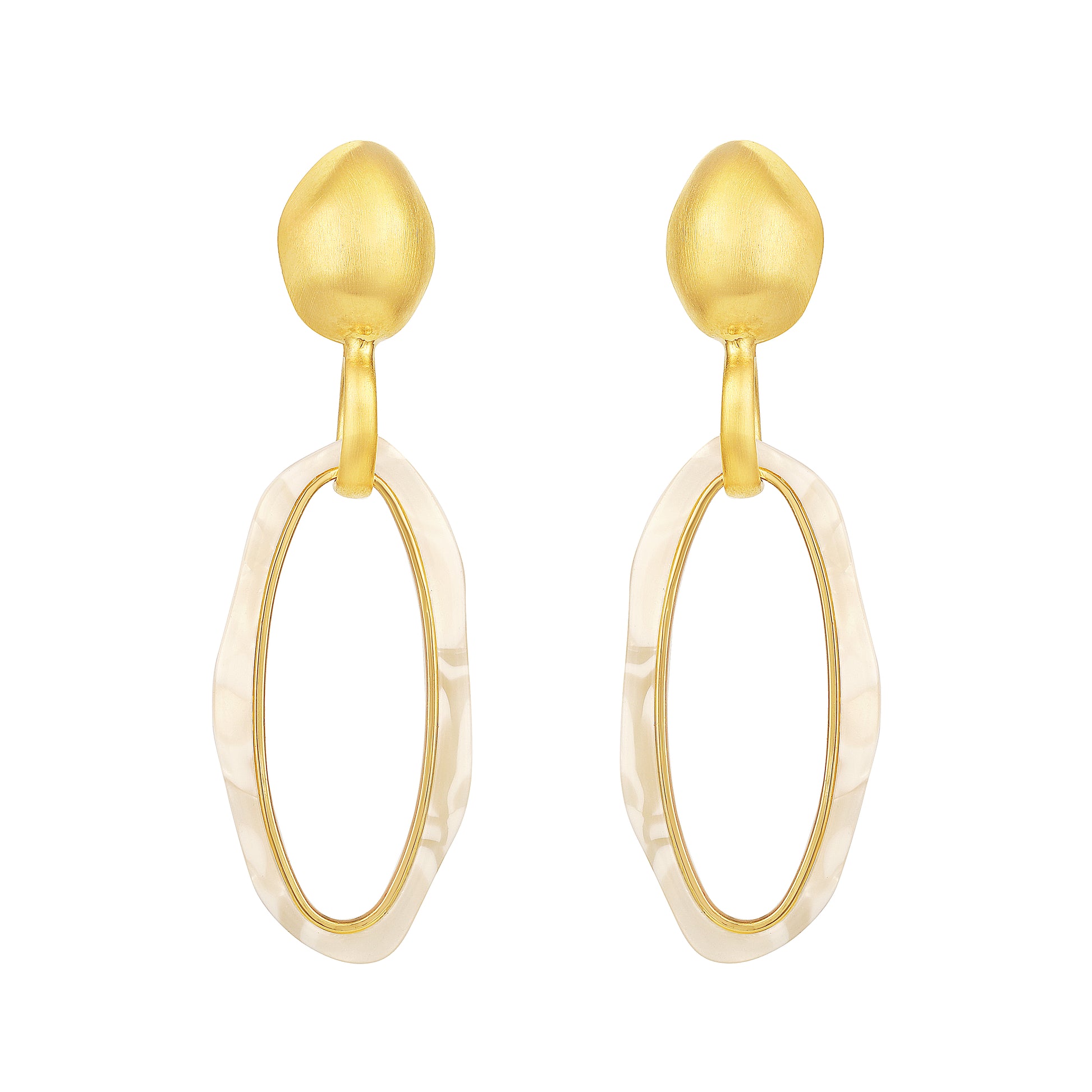 Chic and versatile, these gold plated earrings feature sleek oval resin hoops suspended from glossy gold studs. The textured translucent finish of the hoops adds a soft, contemporary twist to the classic gold-and-clear combo—perfect for effortless styling.
