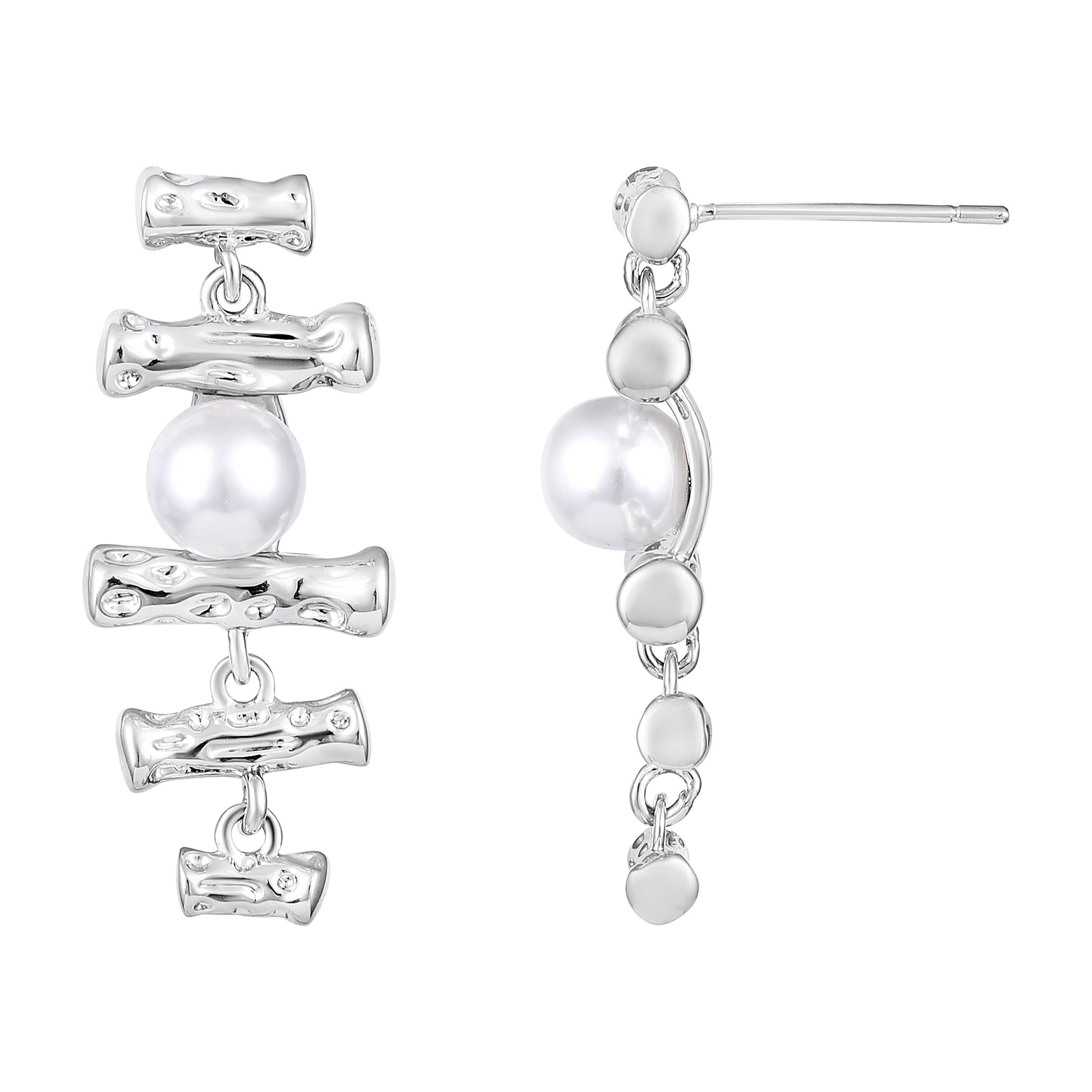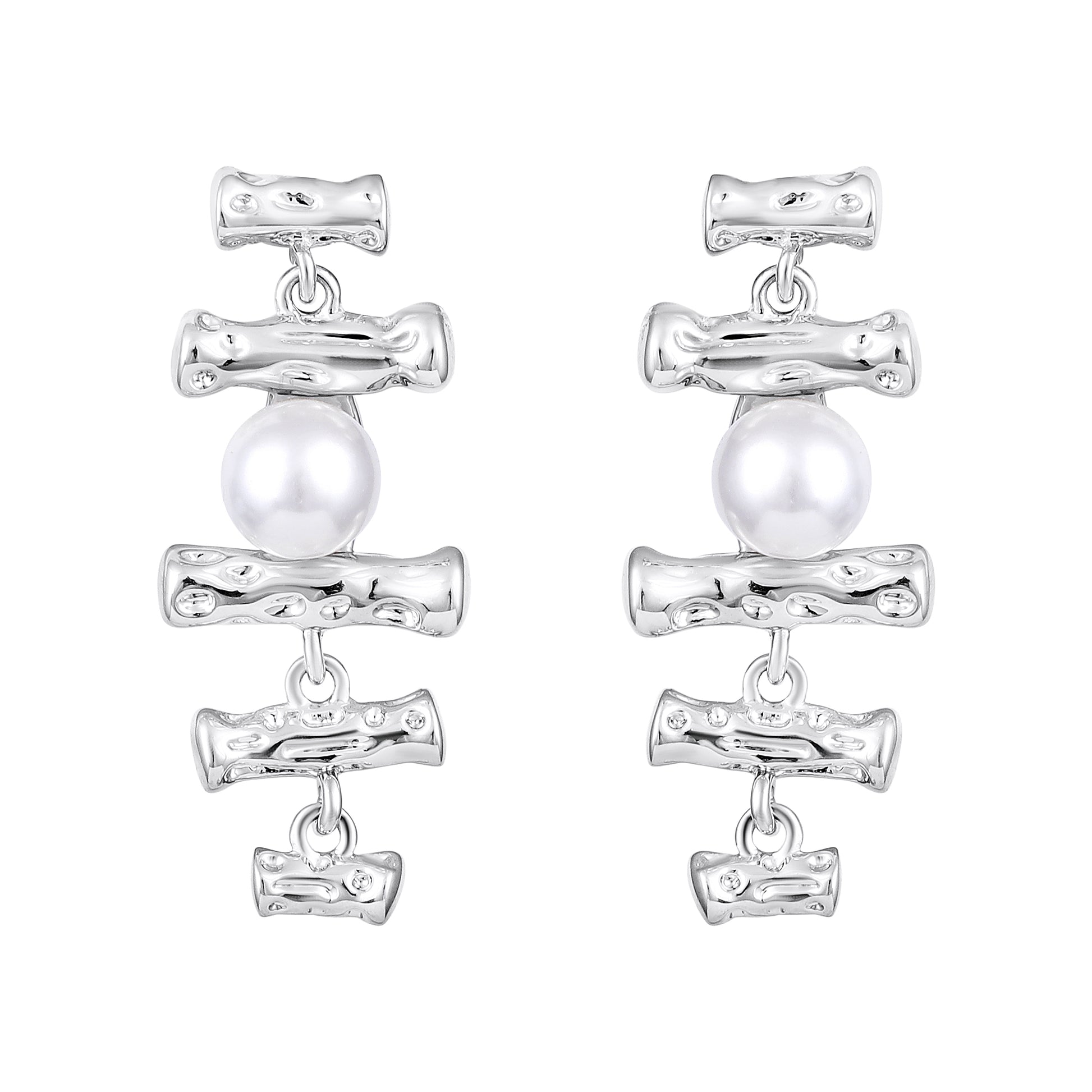 Pearl Bamboo Shape Silver Plated Dangle Earring