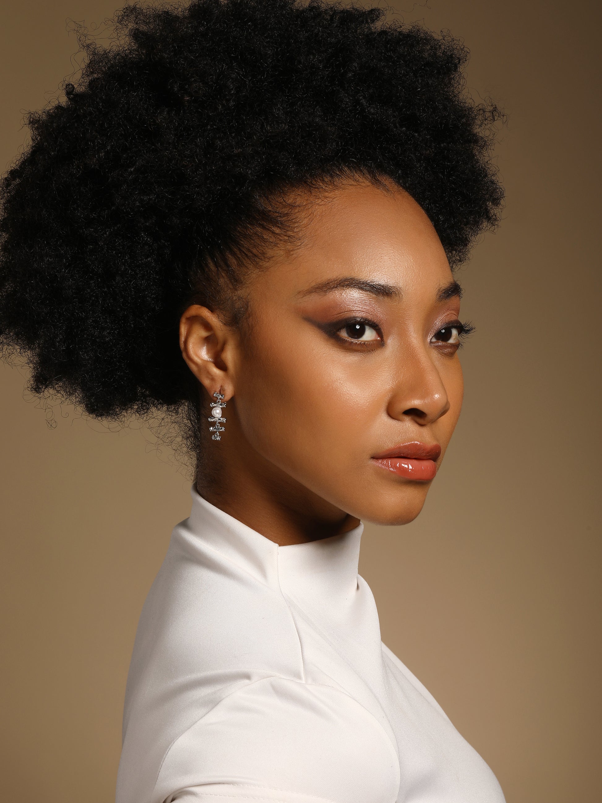 These unique earrings merge structure with serenity—featuring silver bamboo-like segments linked vertically and accented by a central luminous pearl. The brushed metal finish gives the bamboo rods a refined texture, while the pearl adds a soft, elegant contrast.