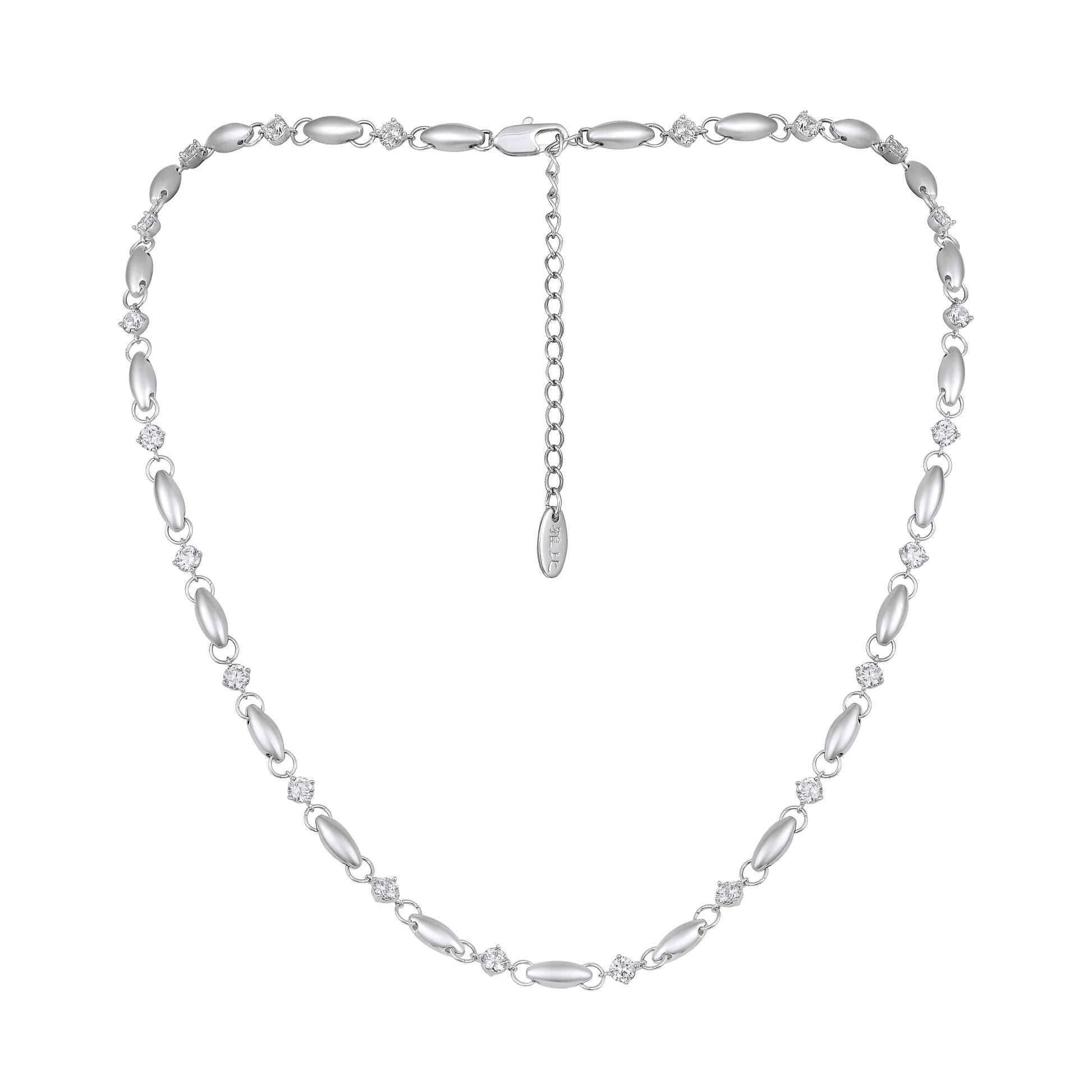Sparkling Sterling Silver Beaded Silver Plated Zircon Necklace Chain