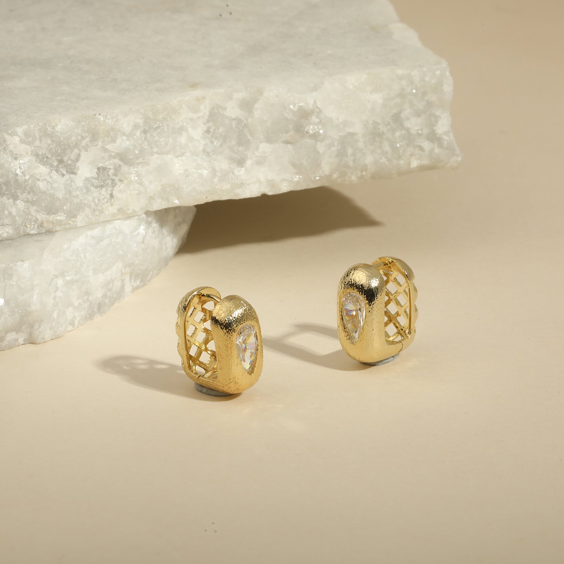 Square Shape 18KT Gold Plated Zircon Clip-On Drop Earring