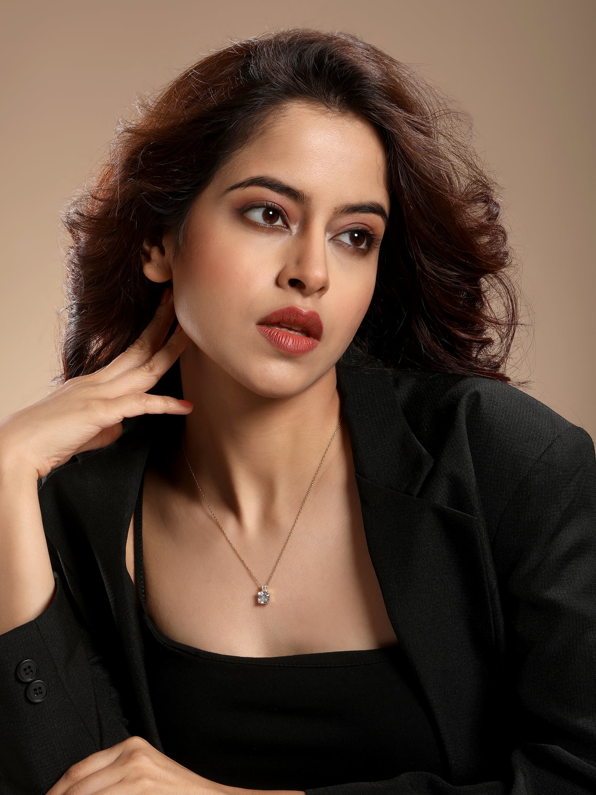 This striking necklace features a bold, square-cut gemstone pendant set in a clean gold-plated frame. The faceted stone reflects light beautifully, creating a luminous look with every movement. Suspended from a sleek gold chain, it brings together simplicity and sophistication in one elegant piece.