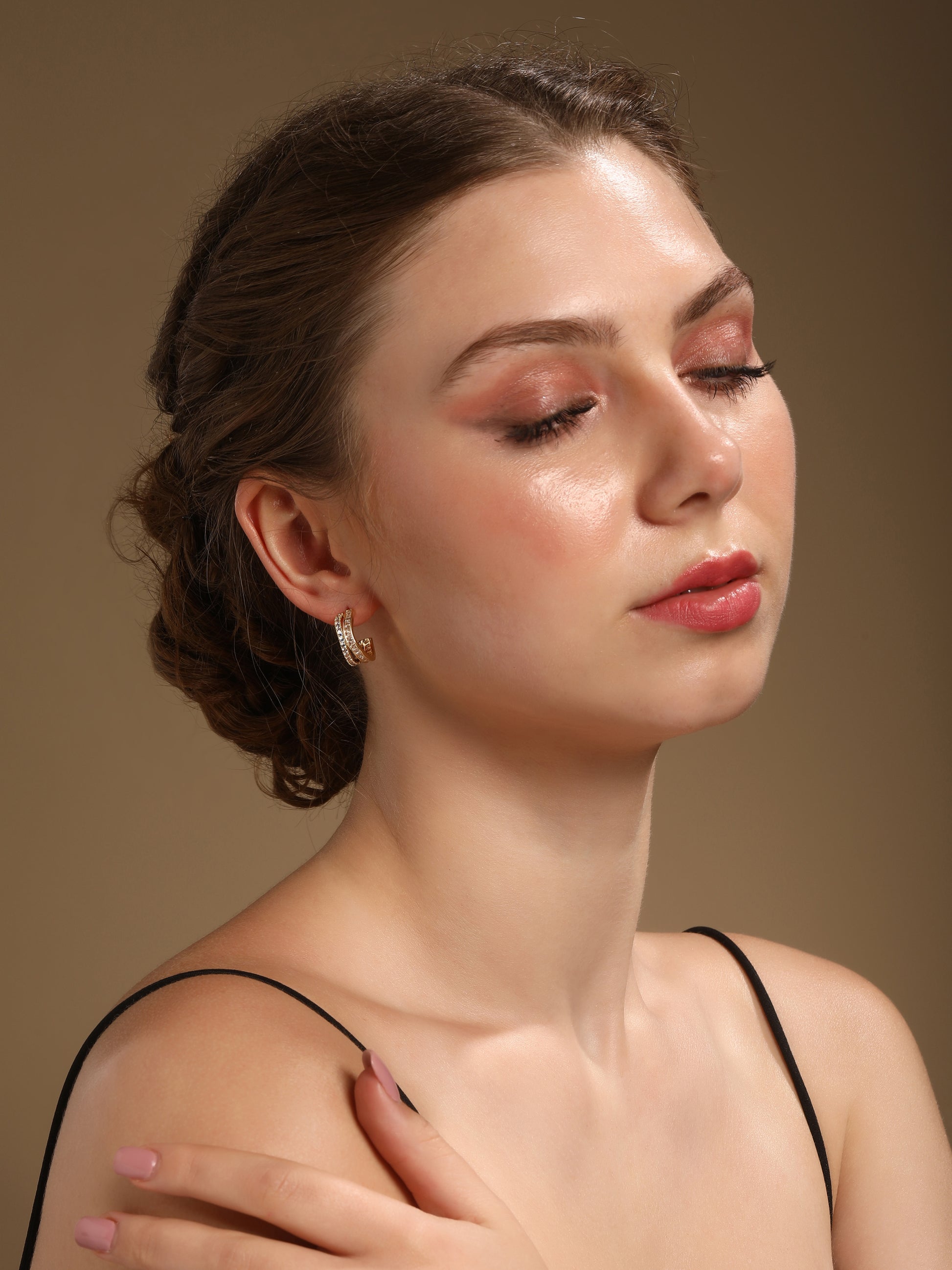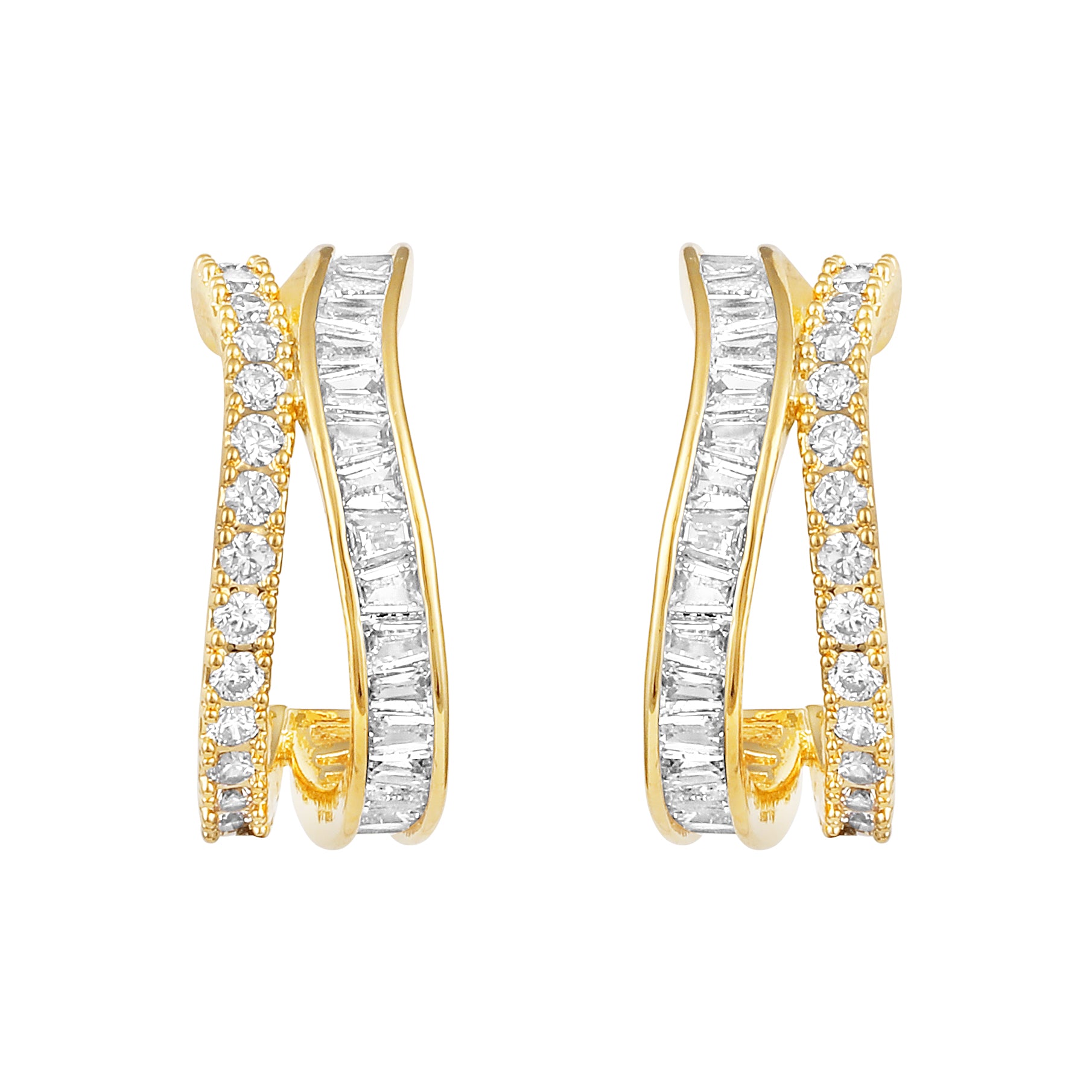 Elegantly set in gold, these rectangular earrings feature two rows of sparkling stones—one with round cuts and the other with sleek baguette cuts. The pairing creates a gorgeous play of texture and shine, giving the piece a luxe, refined look.