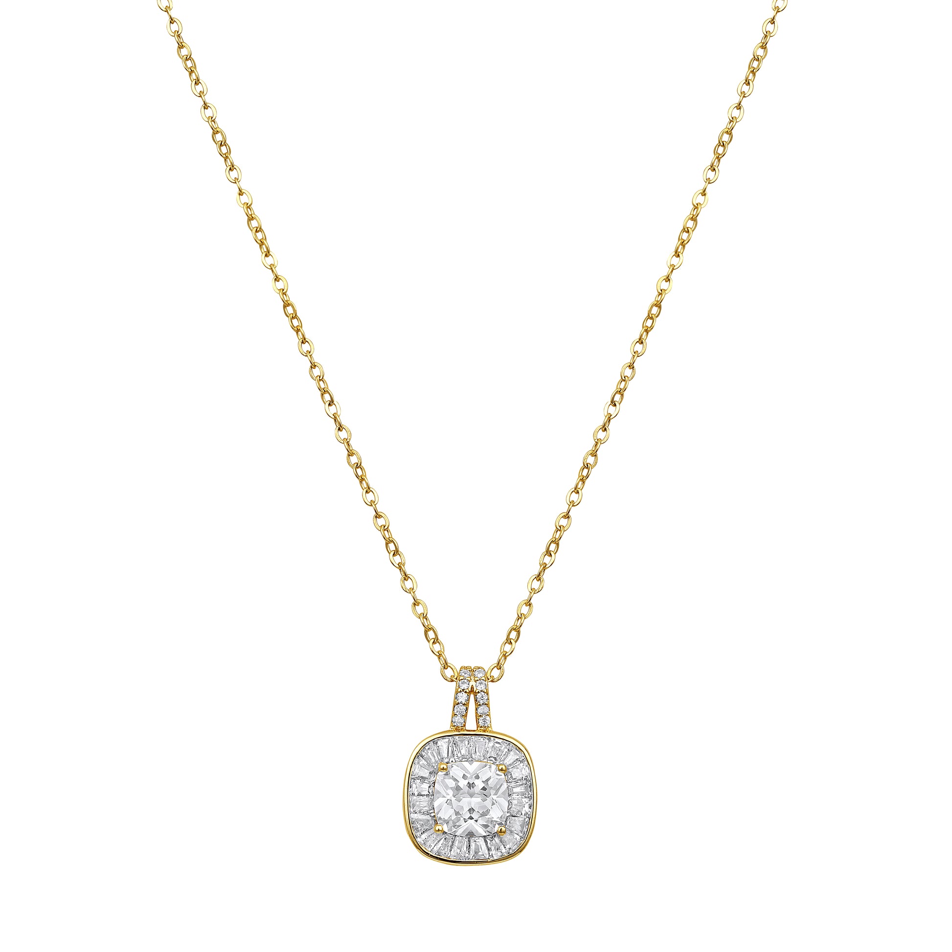 This square pendant is all about clean lines and quiet confidence. The silver plating gives it a cool, polished look, while the brilliant gem at the center adds just the right amount of sparkle.