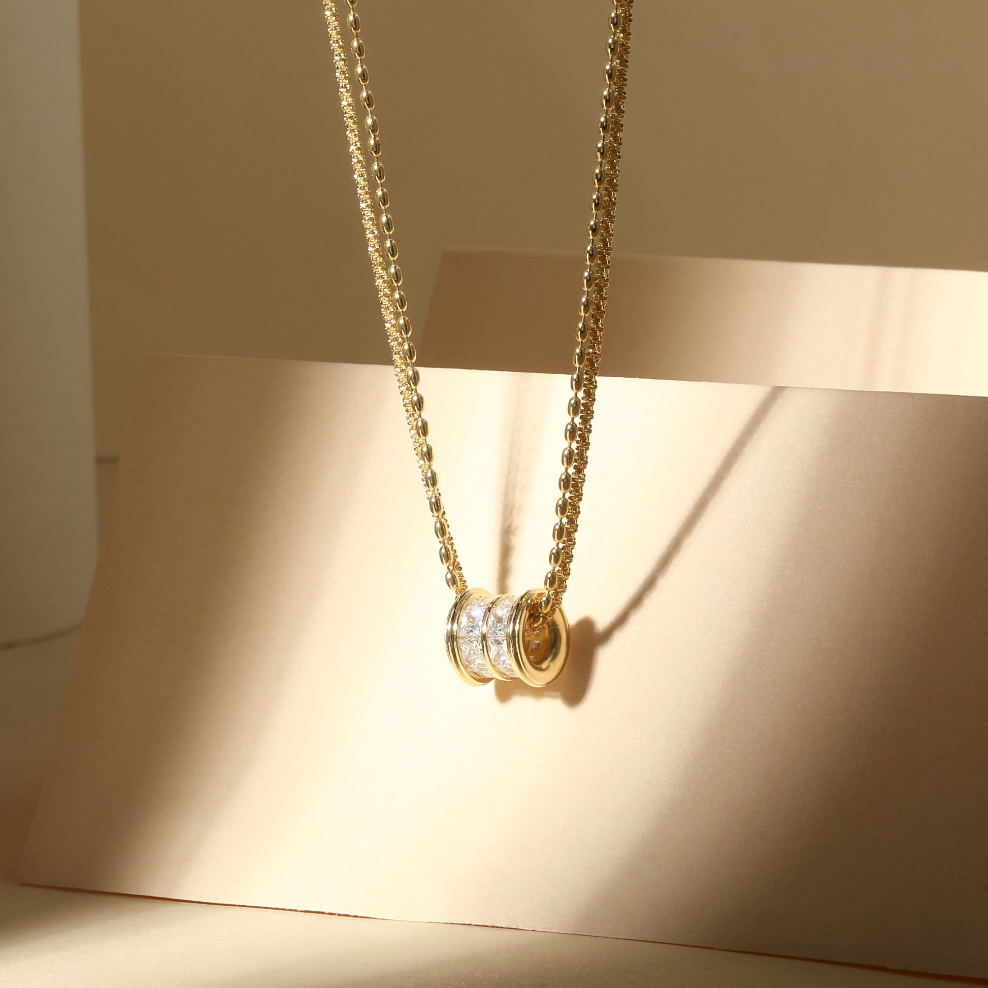Trendy Creative Cylinder 18KT Gold Plated Zircon Pendant Chain