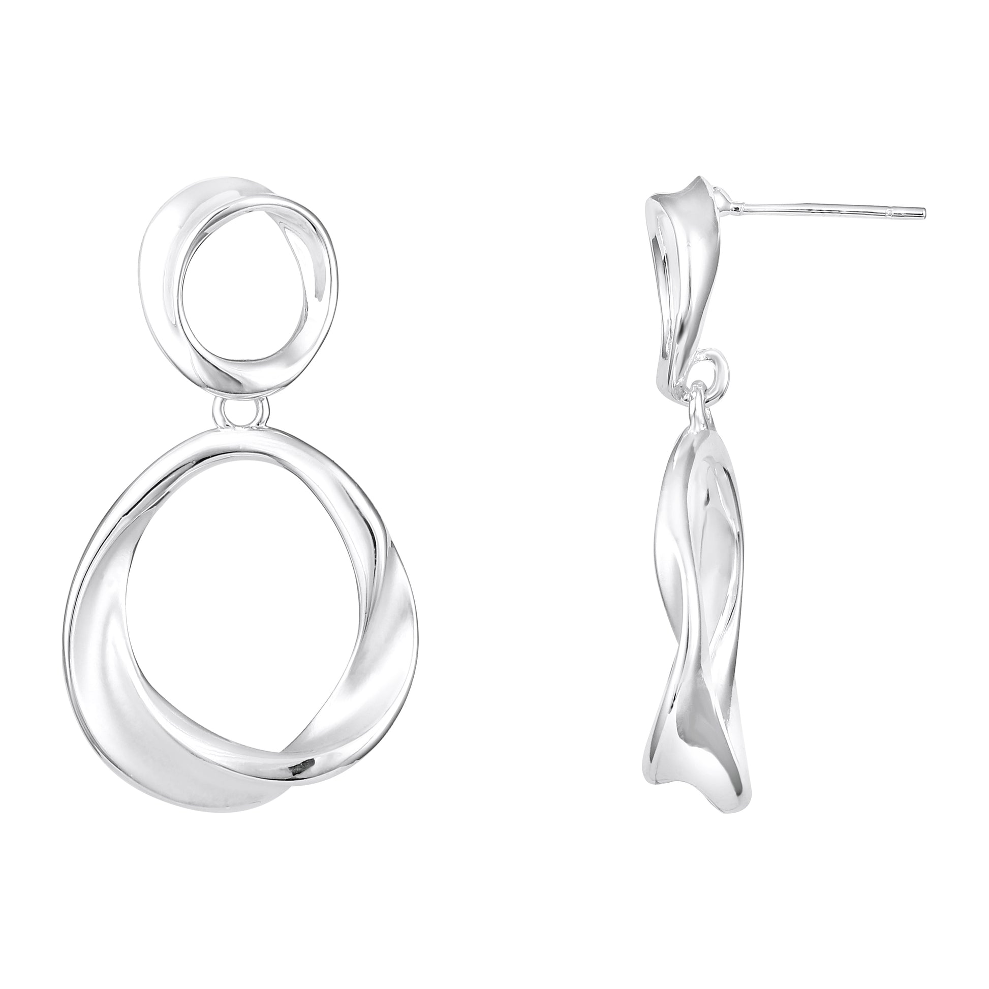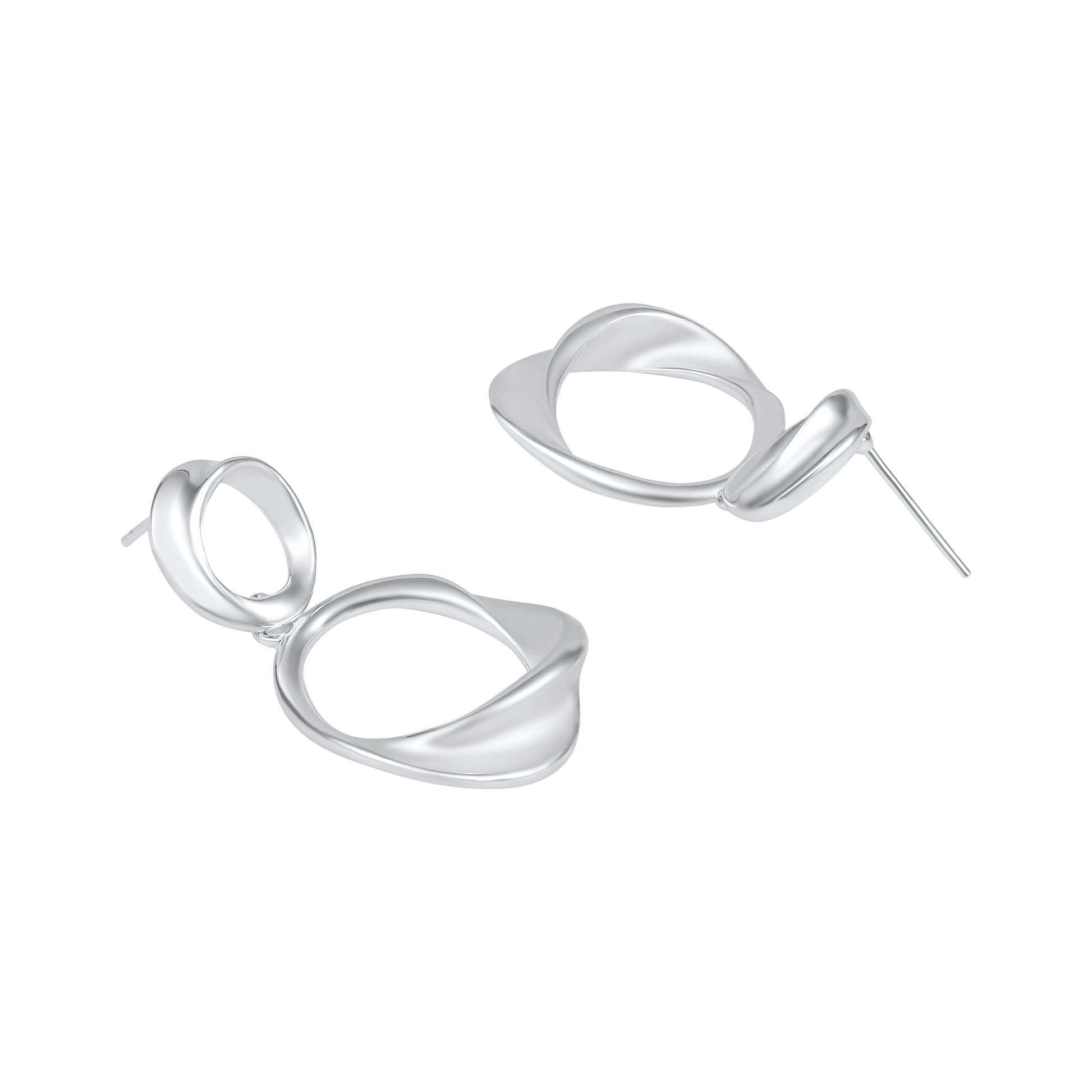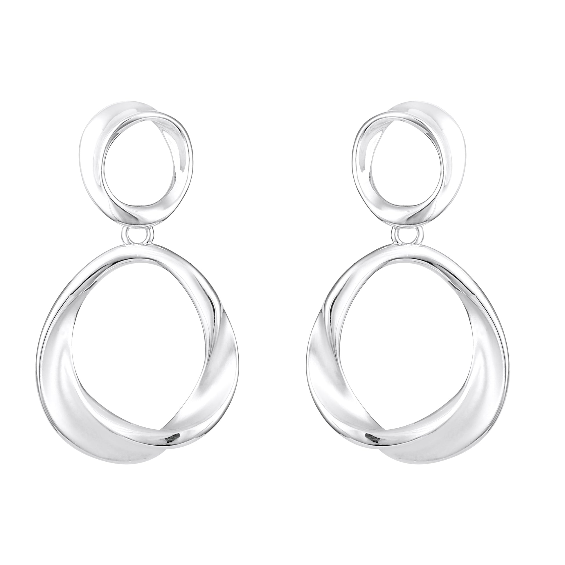Twisted Dual Circle Shaped Silver Plated Dangle Earring