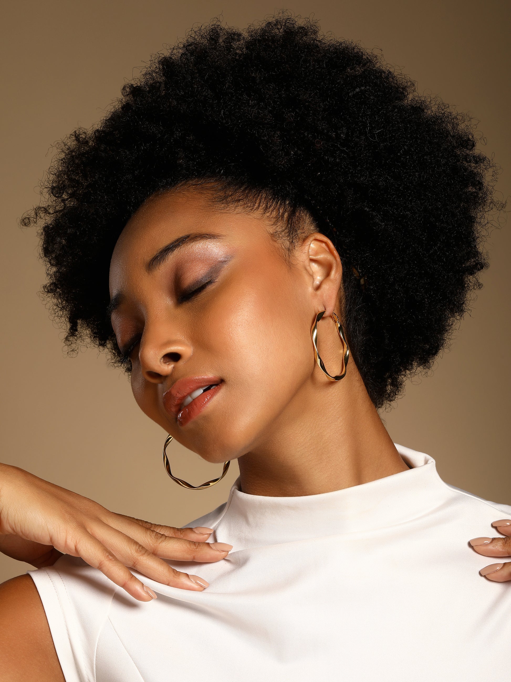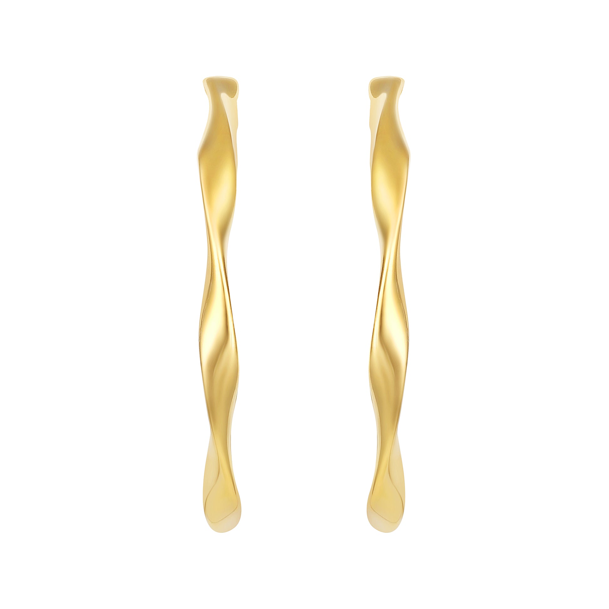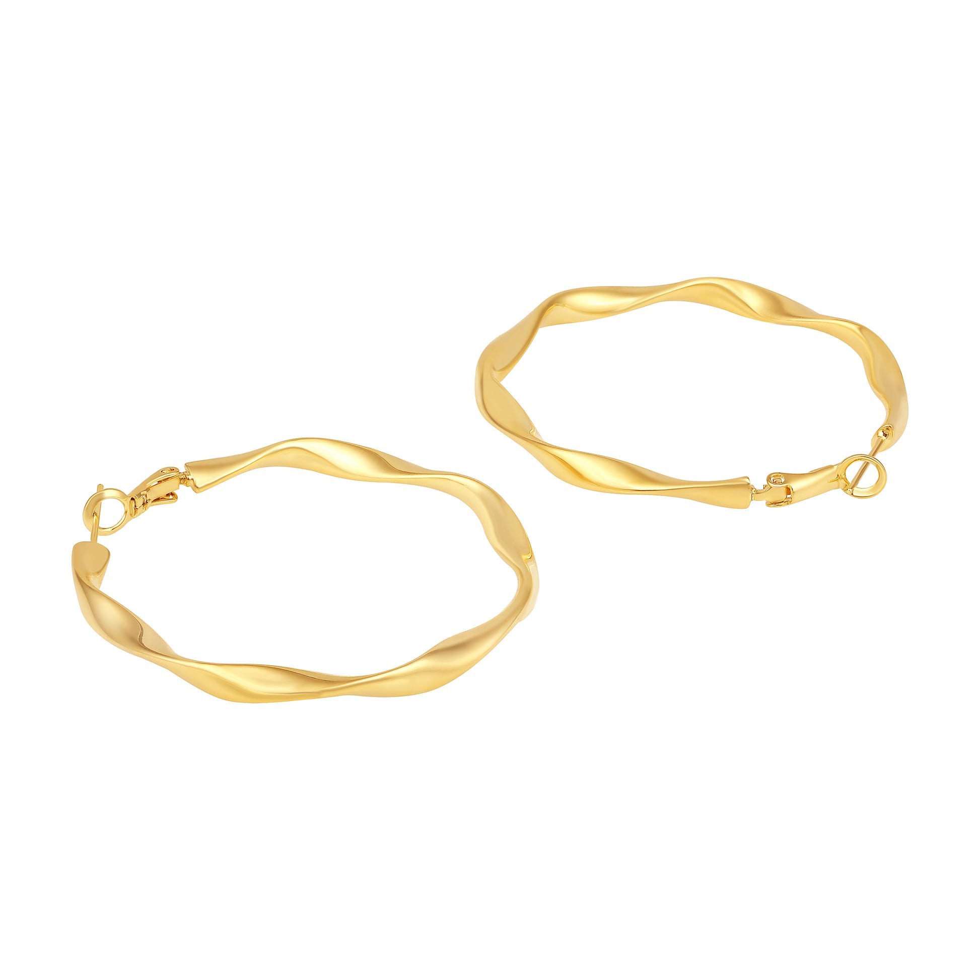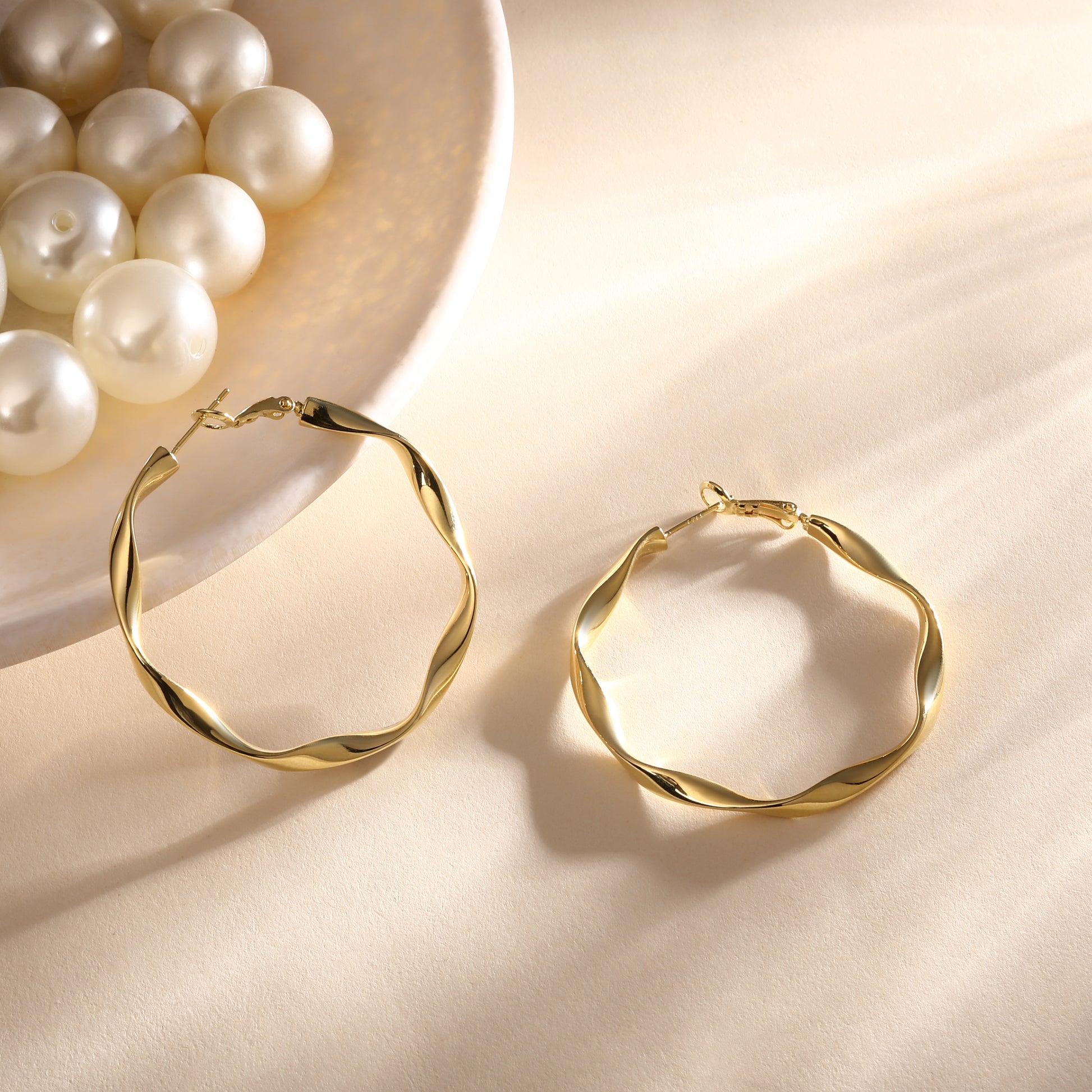 Featuring a twisted design that catches the light from every angle, these gold hoop earrings offer a fresh take on a timeless silhouette. Crafted in 18KT gold plating, the soft curves and textured shine bring effortless elegance to your daily style.