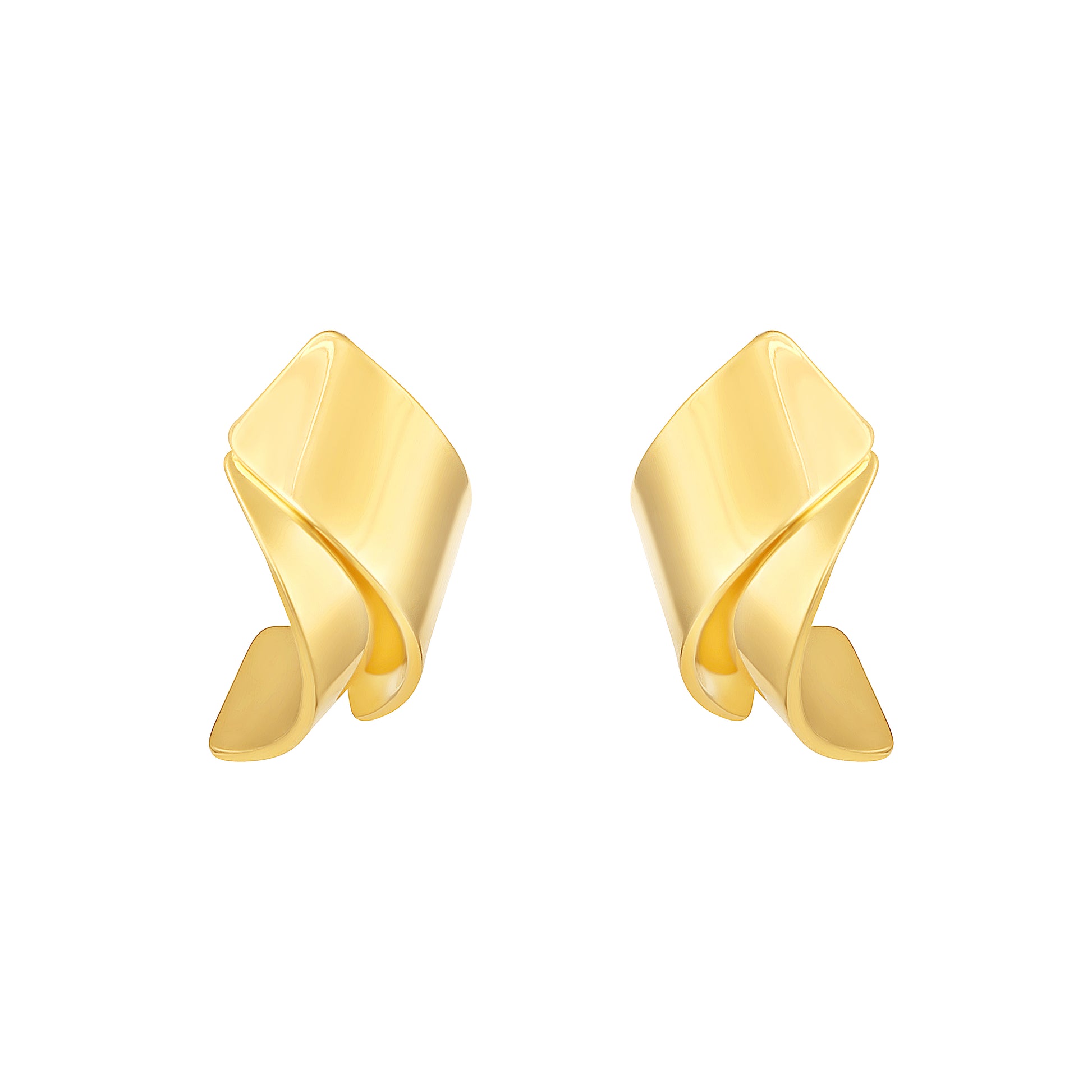 With their smooth, fluid twist and high-shine finish, these gold-plated earrings channel a refined modernity that’s both bold and versatile. The sleek curves reflect light beautifully, offering a sophisticated, artistic charm from every angle.