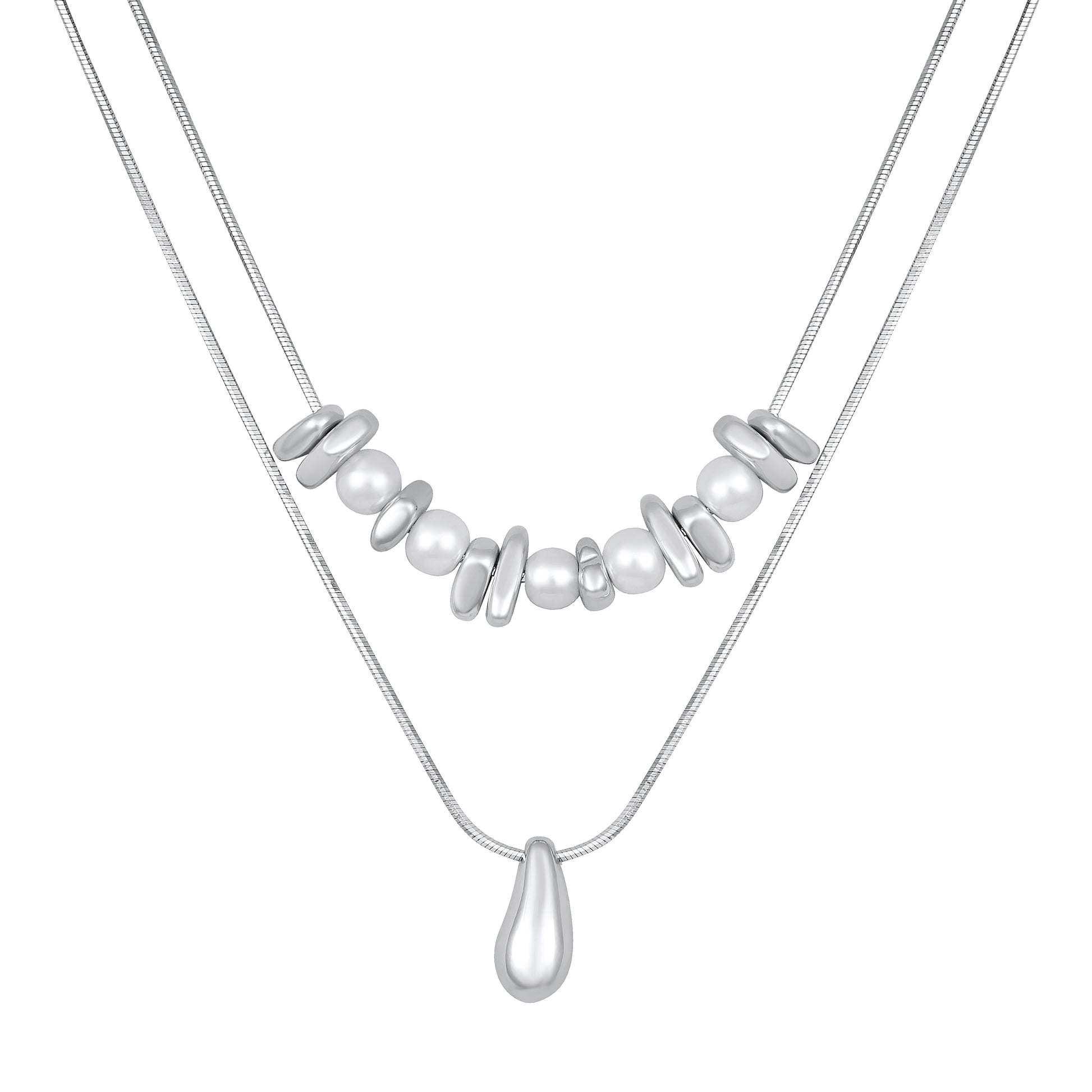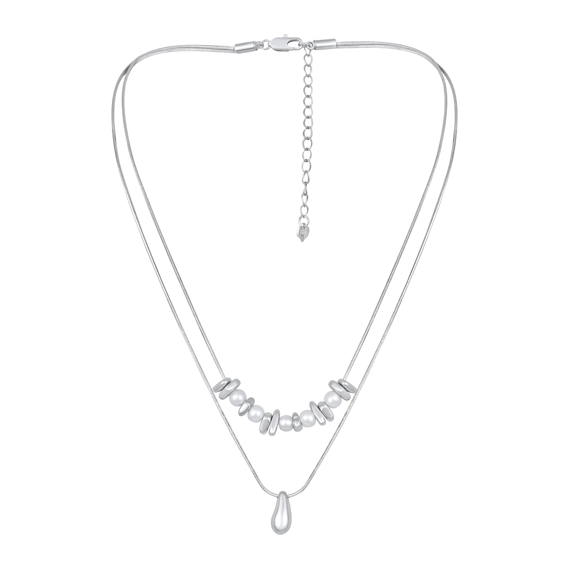 Water Drop Cluster Layered Silver Plated Pendant Chain